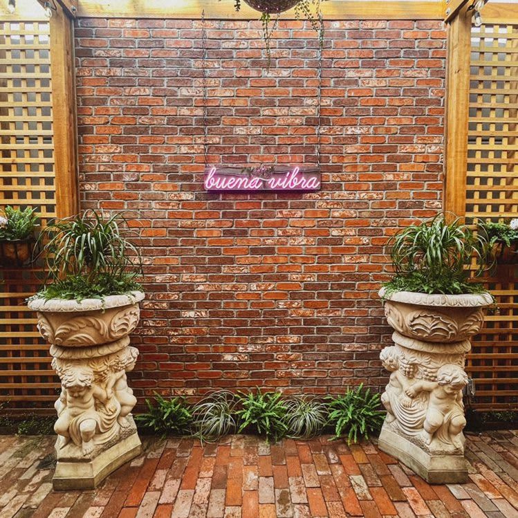Its outdoor patio is a lush wonderland of plants, warm brick, and vine-covered trellises. You’ll feel like you’re dining in someone’s magical backyard! Also, its trendy “Buena Vibra” neon sign makes a perfect photo-op.