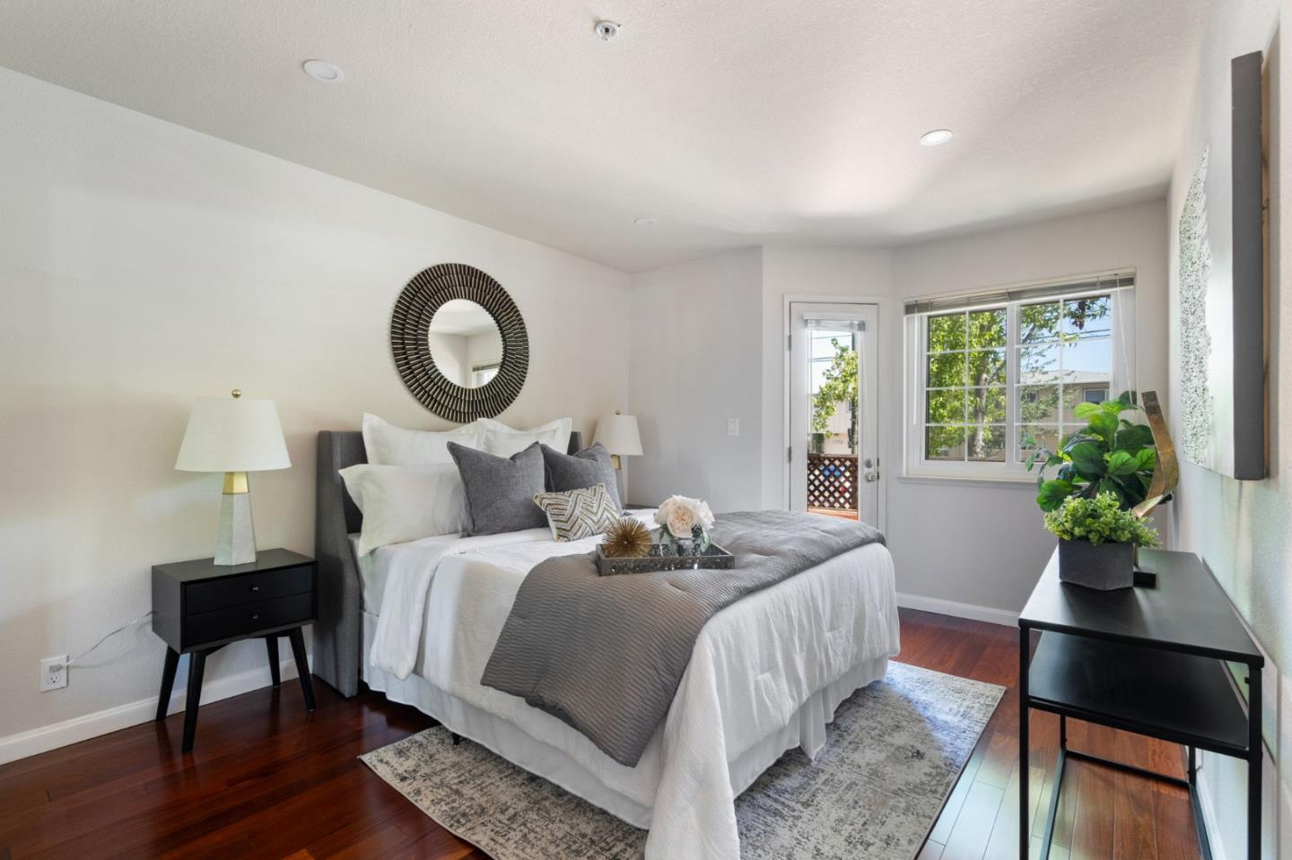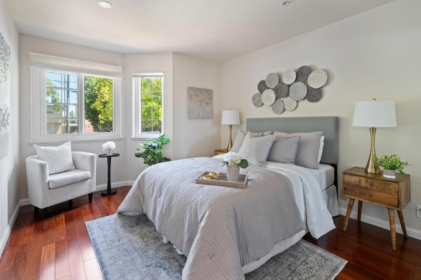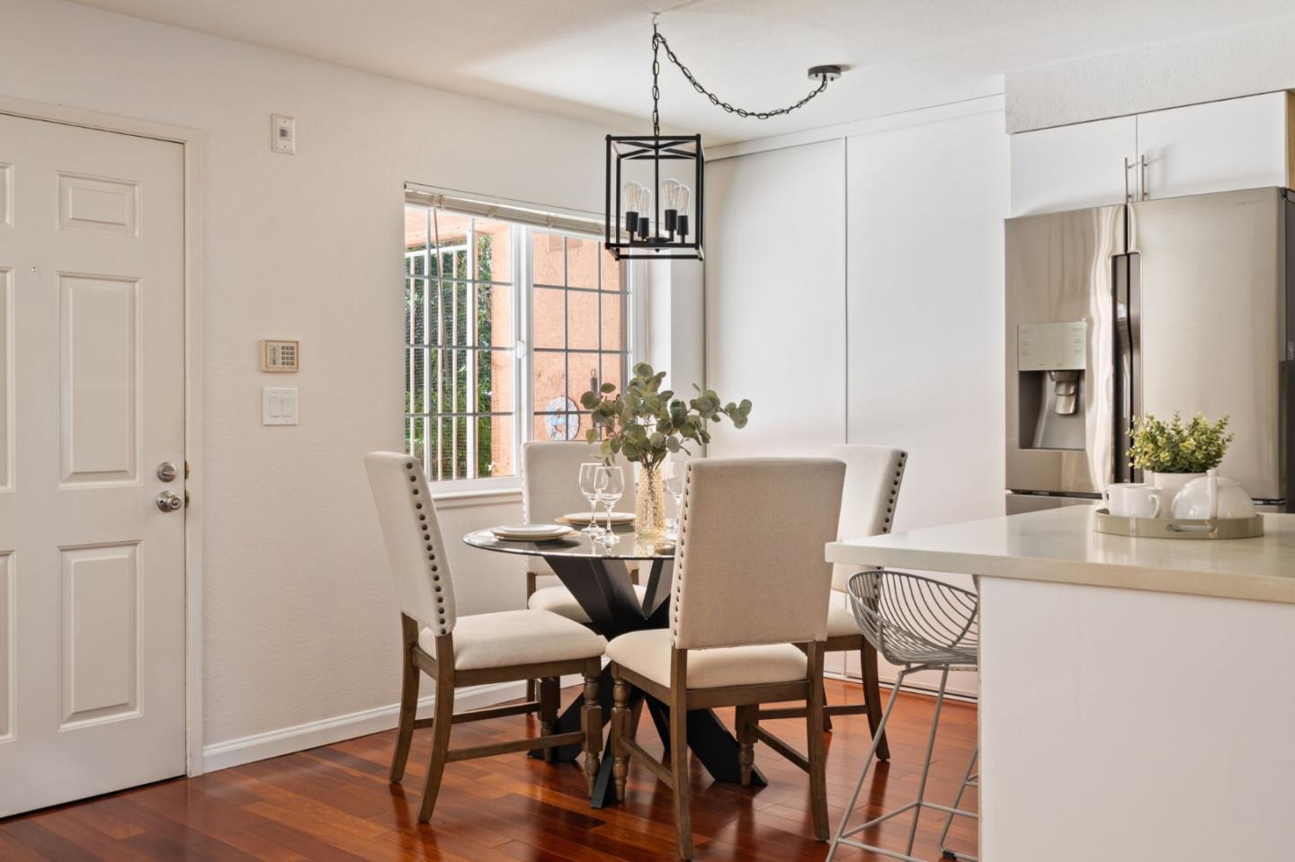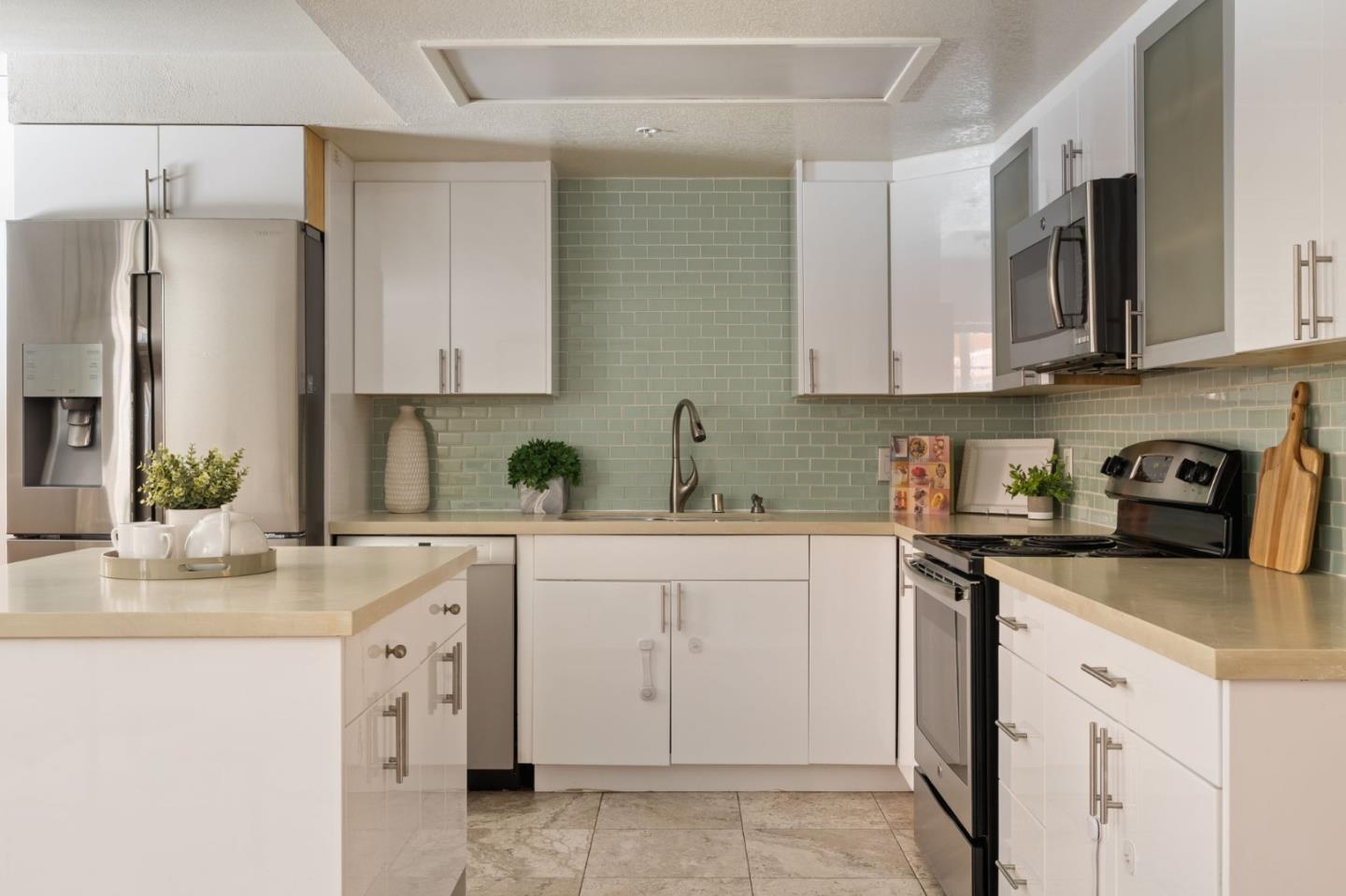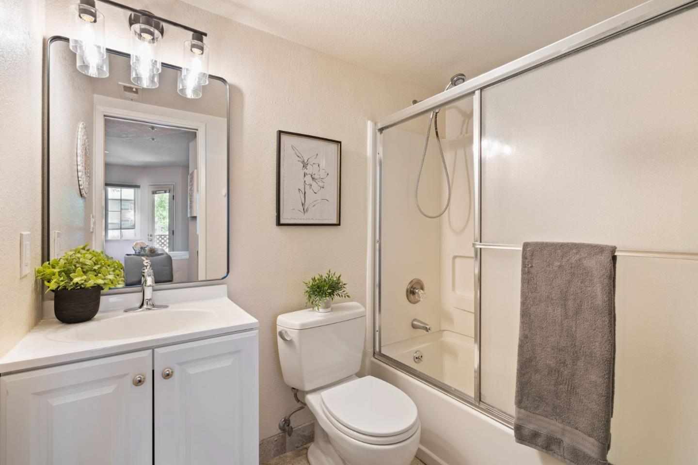 Phenomenal opportunity and it's all here- Updated one-level living with elevator access to the secure underground parking with bonus storage. Inside you'll enjoy an open-concept floorplan with elegant contemporary finishes including quartz countertops, glass tile backsplash and stainless steel appliances. Rich wood floors highlight the main living spaces, in-unit washer/dryer makes laundry a snap. Convenient breakfast bar at the island, plus additional storage in the bright dining area. Two updated baths including one en-suite. The primary bedroom opens to a private patio. Back windows are double windows for sound insulation. Building amenities include secure access, pool and spa, dedicated bike storage, plus just moments from Rengstorff Park, San Antonio Shopping Center, bike trail to Google Campus, Downtown Mountain View and all this central Silicon Valley location has to offer. You'll enjoy easy commute connections and endless shopping and dining options nearby.
