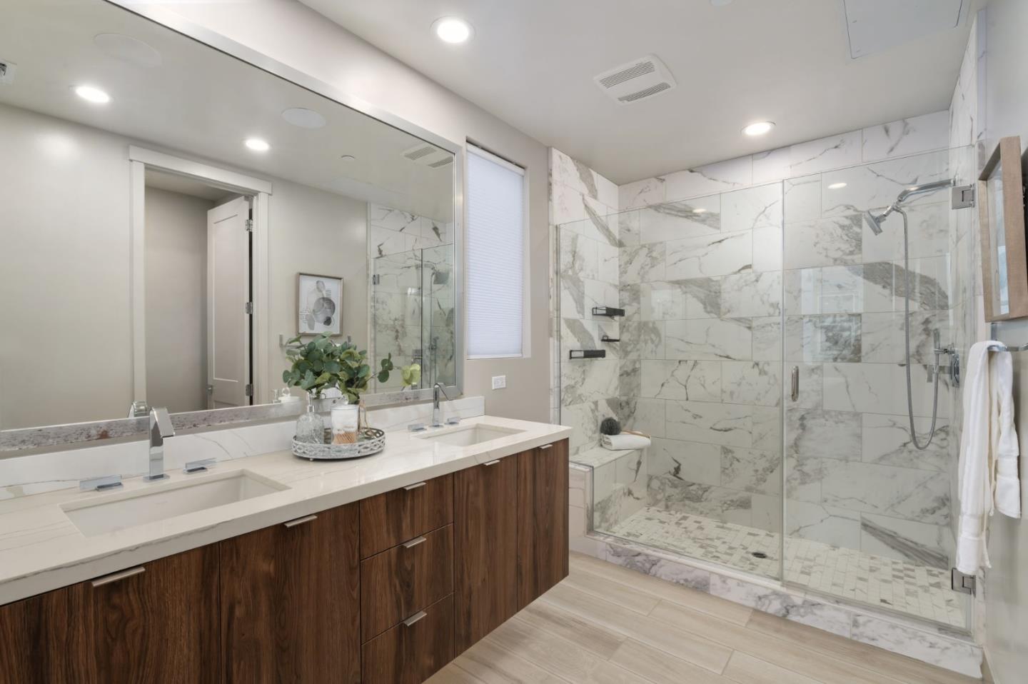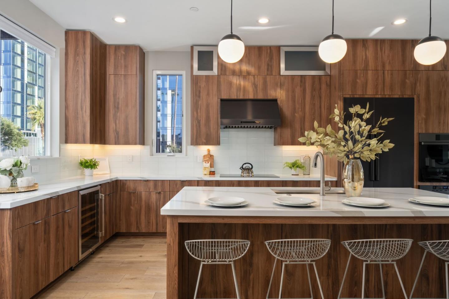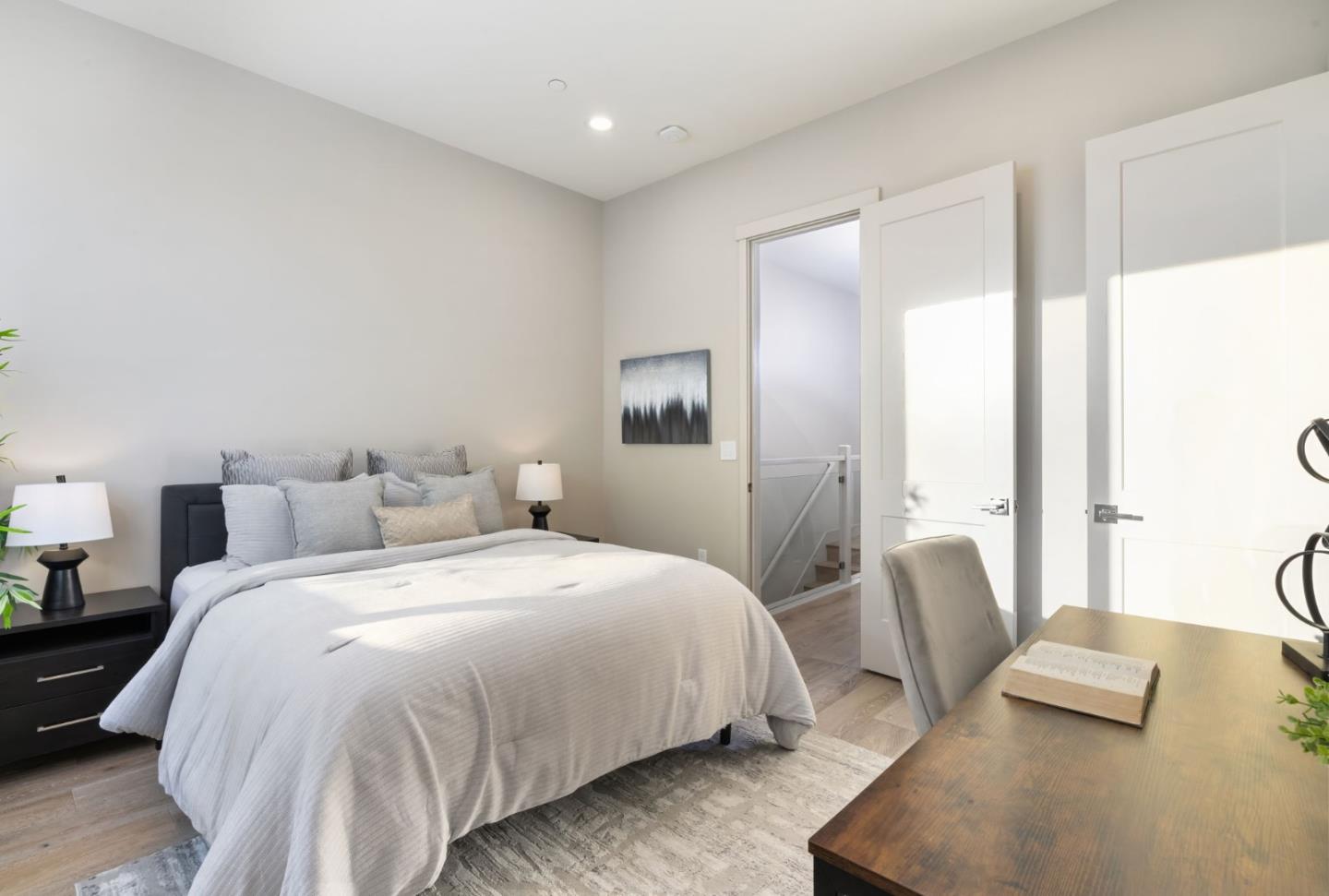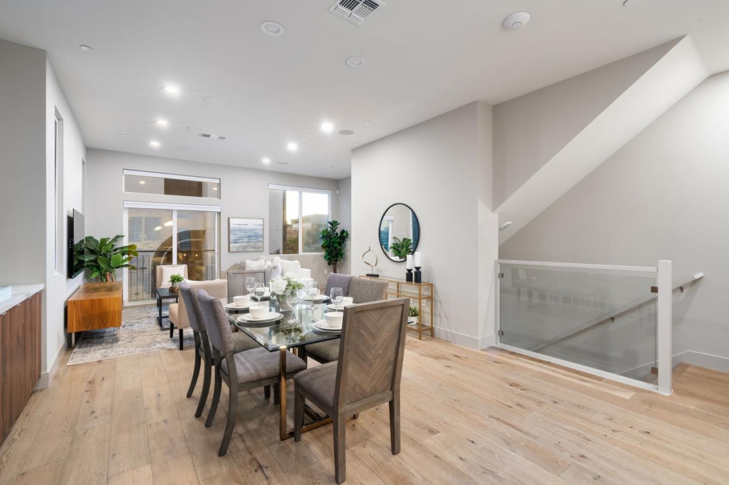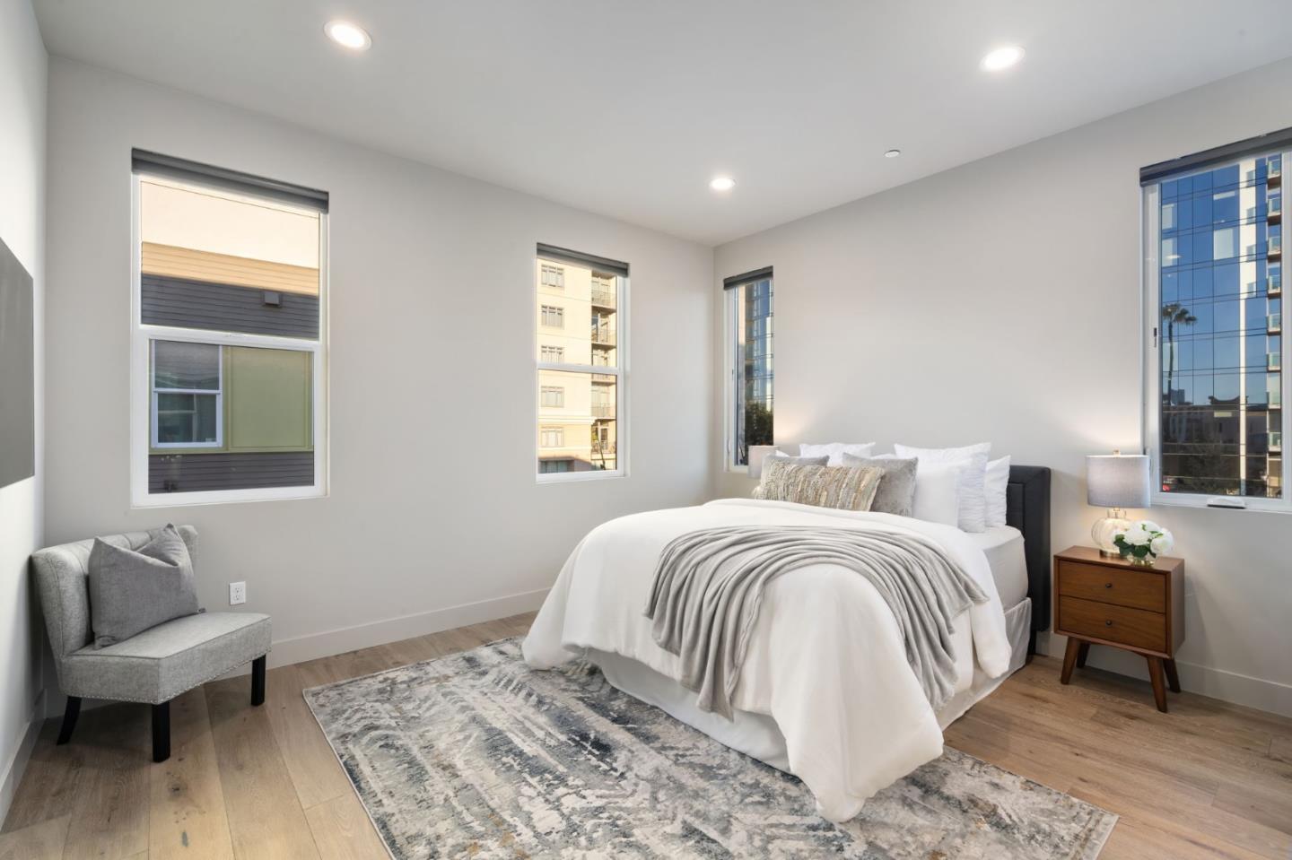Ultra sophisticated end-unit townhome situated moments from exciting San Pedro Square Market- you'll be grabbing coffee, dinner, or drinks- among the incredible benefits of Downtown San Jose living. Numerous parks, shopping, theatre, and entertainment right out your doorstep. This custom upgraded 4 year new home is truly one-of-a-kind, with top-to-bottom upgrades including whole-home Lutron lighting and shade systems, zoned HVAC system, integrated sound system, and luxurious finishes and detail through out. All three bedrooms are en-suites with luxurious baths. First level has a full bedroom with built-in Murphy bed. The perfect versatile space for you, guests, or home office. Attached two-car garage provides ultimate convenience and security. Next, on the second level is the fabulous open-concept living and entertaining space, flooded with light on 3 sides. Stunning finishes with contemporary cabinetry, a massive kitchen island, wine refrigerator, and top-of-the-line Dacor appliances leaving your senses ablaze with all the incredible touches. Large walk-in pantry, half bath, built-in dining buffet and living space. Upper level features side-by-side washer/dryer, Primary suite with walk-in closet, and 3rd ensuite. Located at the nexus of commuting corridors.
