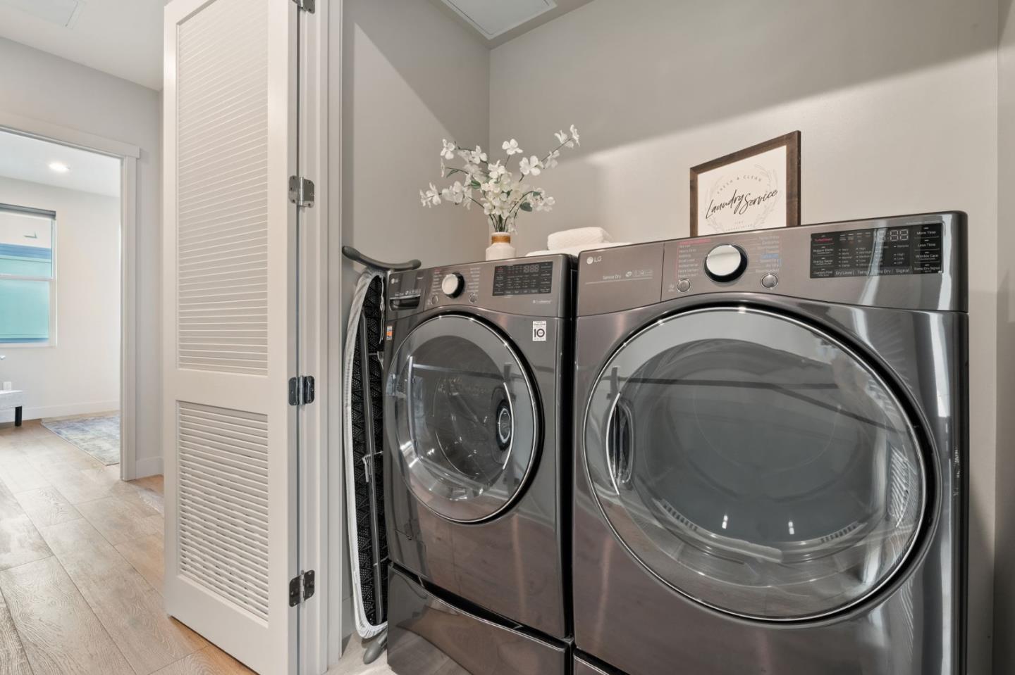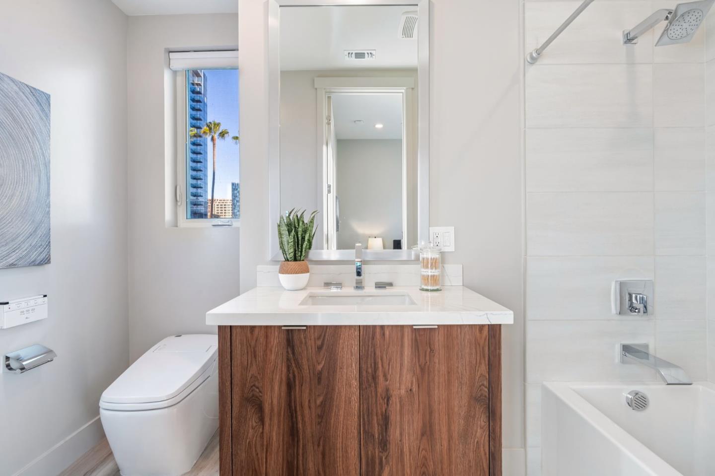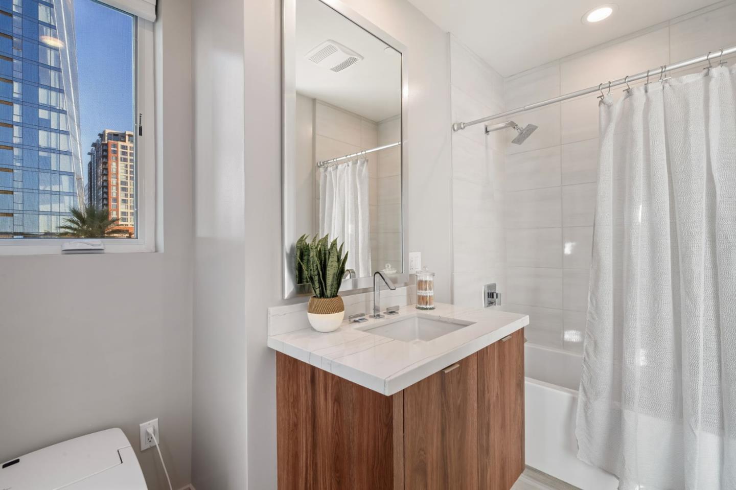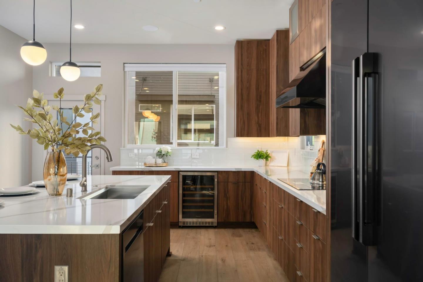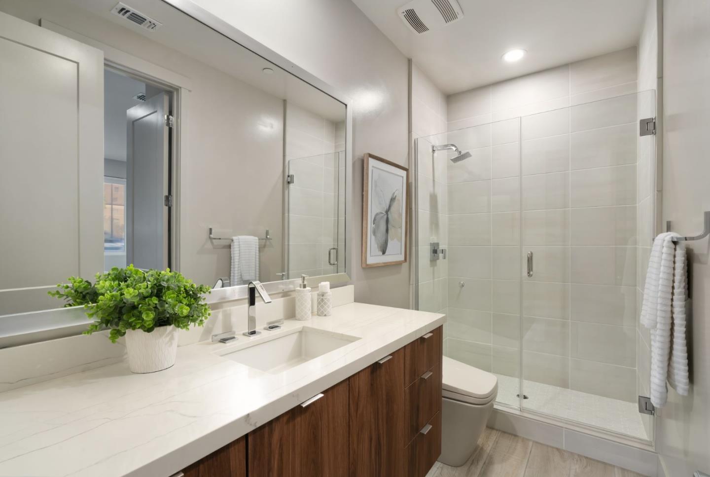 Ultra sophisticated end-unit townhome situated moments from exciting San Pedro Square Market- you'll be grabbing coffee, dinner, or drinks- among the incredible benefits of Downtown San Jose living. Numerous parks, shopping, theatre, and entertainment right out your doorstep. This custom upgraded 4 year new home is truly one-of-a-kind, with top-to-bottom upgrades including whole-home Lutron lighting and shade systems, zoned HVAC system, integrated sound system, and luxurious finishes and detail through out. All three bedrooms are en-suites with luxurious baths. First level has a full bedroom with built-in Murphy bed. The perfect versatile space for you, guests, or home office. Attached two-car garage provides ultimate convenience and security. Next, on the second level is the fabulous open-concept living and entertaining space, flooded with light on 3 sides. Stunning finishes with contemporary cabinetry, a massive kitchen island, wine refrigerator, and top-of-the-line Dacor appliances leaving your senses ablaze with all the incredible touches. Large walk-in pantry, half bath, built-in dining buffet and living space. Upper level features side-by-side washer/dryer, Primary suite with walk-in closet, and 3rd ensuite. Located at the nexus of commuting corridors.