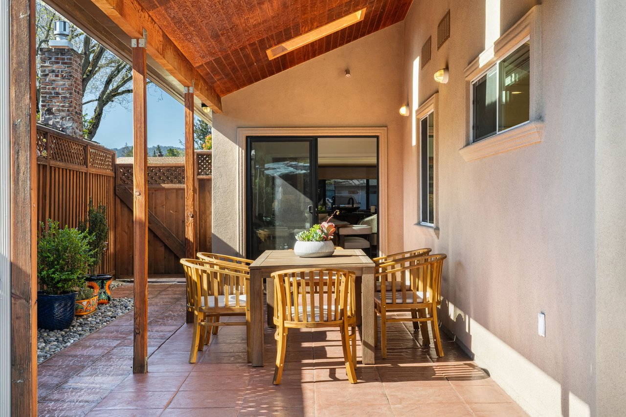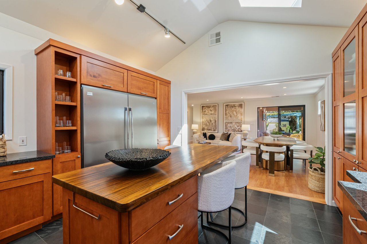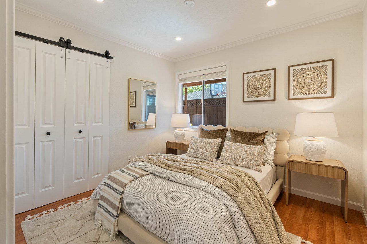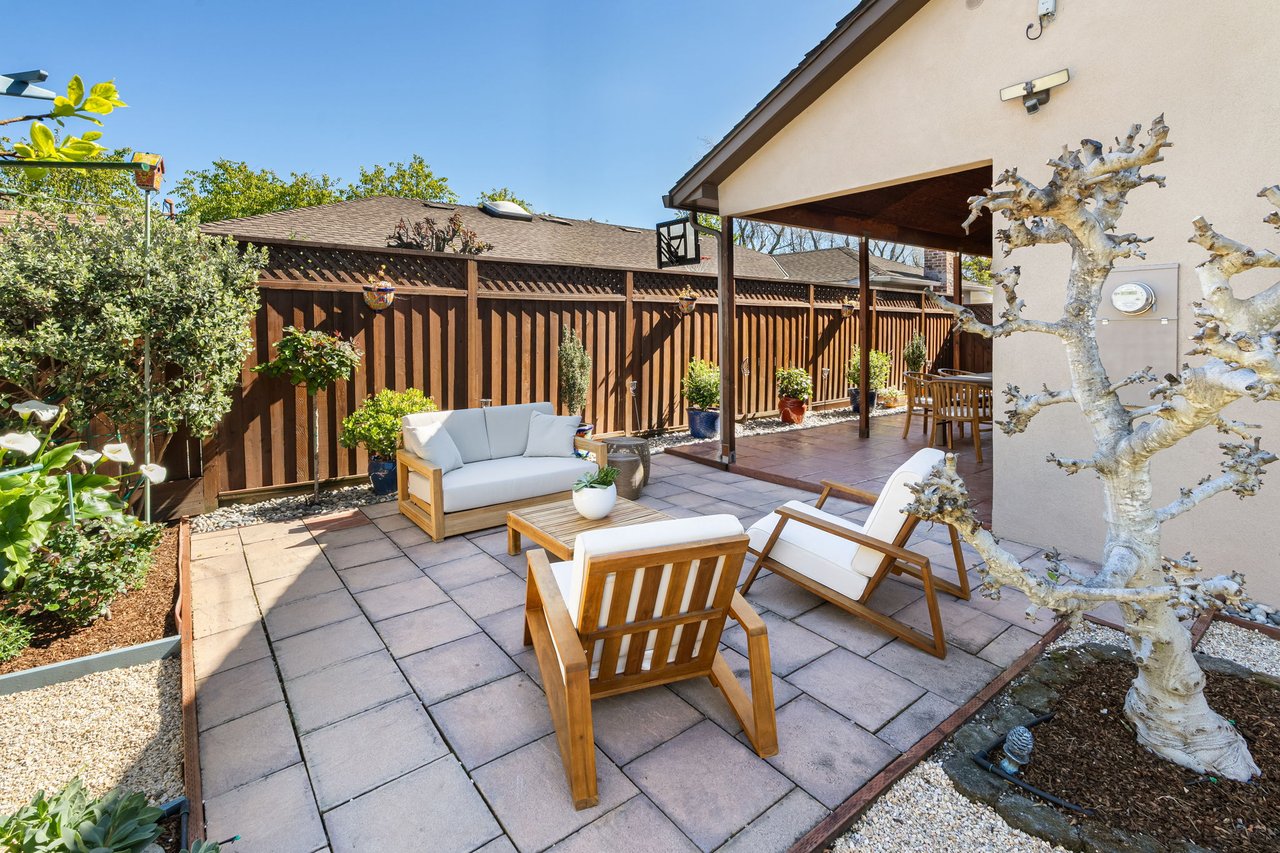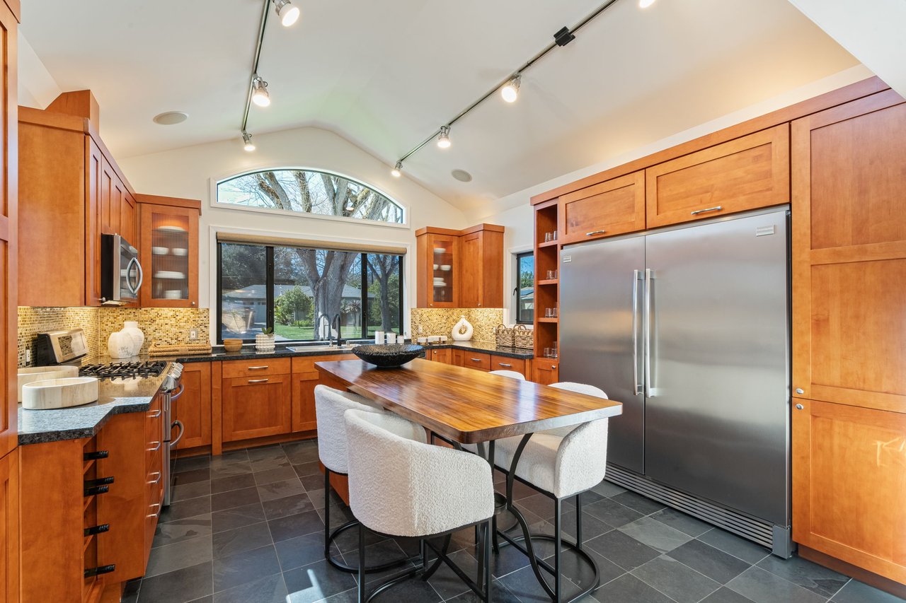 A meticulously cared for and updated home with a high attention to detail throughout. Centrally located moments from Woodside Shopping Plaza and convenient commuting routes via Woodside Rd, Hwys 280, 101 and more. The formal entryway welcomes you to the open-concept floor plan with impressive, flexible spaces. The dramatic kitchen has soaring vaulted ceilings, is drenched in light from 3 sides plus a skylight- illuminating a custom eat-in island, ample storage with rich cabinetry, chef-quality oversized fridge and freezer, plus gas range. The finished garage space with built-in storage and epoxy-style flooring make for a flexible space, plus dedicated laundry room with sink. Four spacious bedrooms including a primary with dual closets and ensuite bath. The hall bath has dual vanities, vaulted ceiling and skylight for additional natural light. Outside, enjoy the large covered paver patio, mature landscaping with a lush lawn, mature flowers and fruit trees. Two large storage sheds for storage/workshop, plus integrated outdoor drainage system, A secure gate opens for convenient shopping/maintenance access. Easily accessible, walkable, and temperature regulated attic space is a storage dream. Central heating, cooling, upgraded insulation, and numerous additional features!