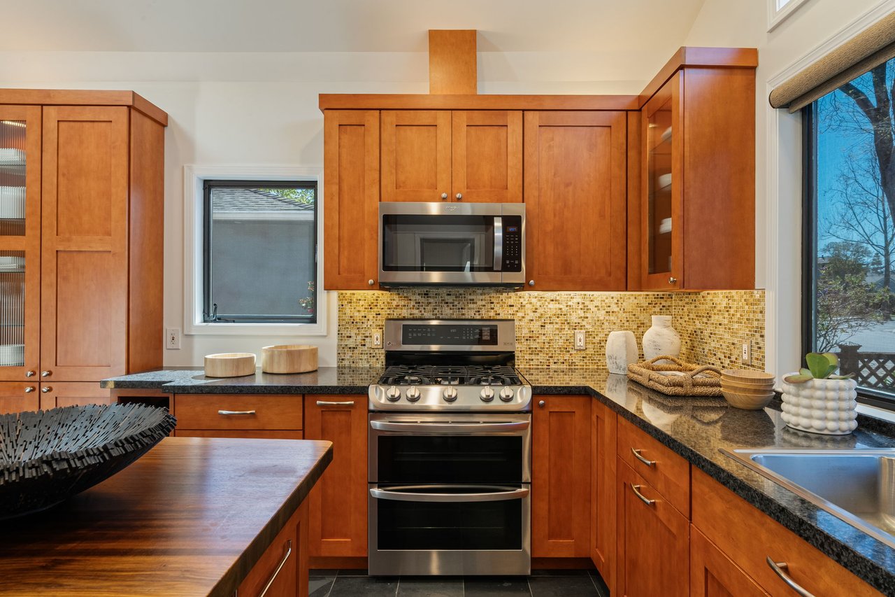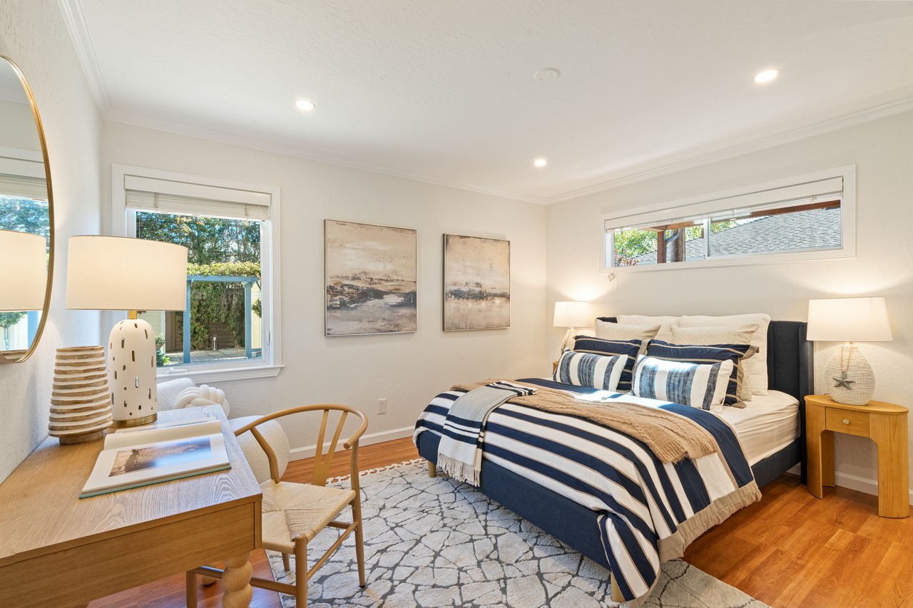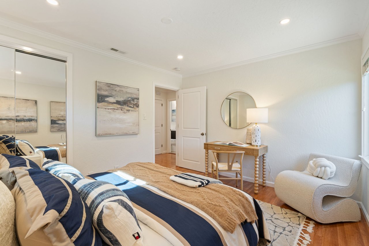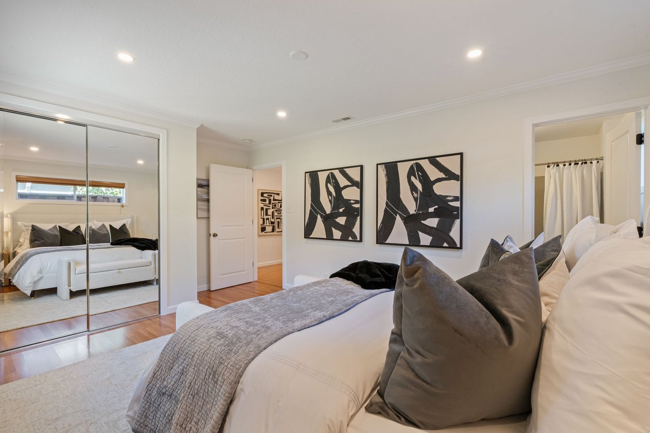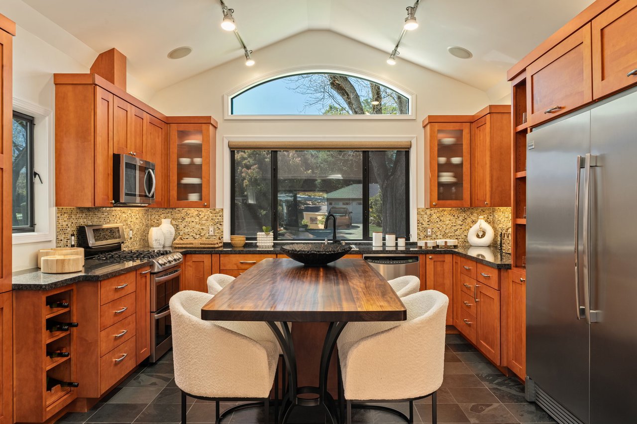 A meticulously cared for and updated home with a high attention to detail throughout. Centrally located moments from Woodside Shopping Plaza and convenient commuting routes via Woodside Rd, Hwys 280, 101 and more. The formal entryway welcomes you to the open-concept floor plan with impressive, flexible spaces. The dramatic kitchen has soaring vaulted ceilings, is drenched in light from 3 sides plus a skylight- illuminating a custom eat-in island, ample storage with rich cabinetry, chef-quality oversized fridge and freezer, plus gas range. The finished garage space with built-in storage and epoxy-style flooring make for a flexible space, plus dedicated laundry room with sink. Four spacious bedrooms including a primary with dual closets and ensuite bath. The hall bath has dual vanities, vaulted ceiling and skylight for additional natural light. Outside, enjoy the large covered paver patio, mature landscaping with a lush lawn, mature flowers and fruit trees. Two large storage sheds for storage/workshop, plus integrated outdoor drainage system, A secure gate opens for convenient shopping/maintenance access. Easily accessible, walkable, and temperature regulated attic space is a storage dream. Central heating, cooling, upgraded insulation, and numerous additional features!