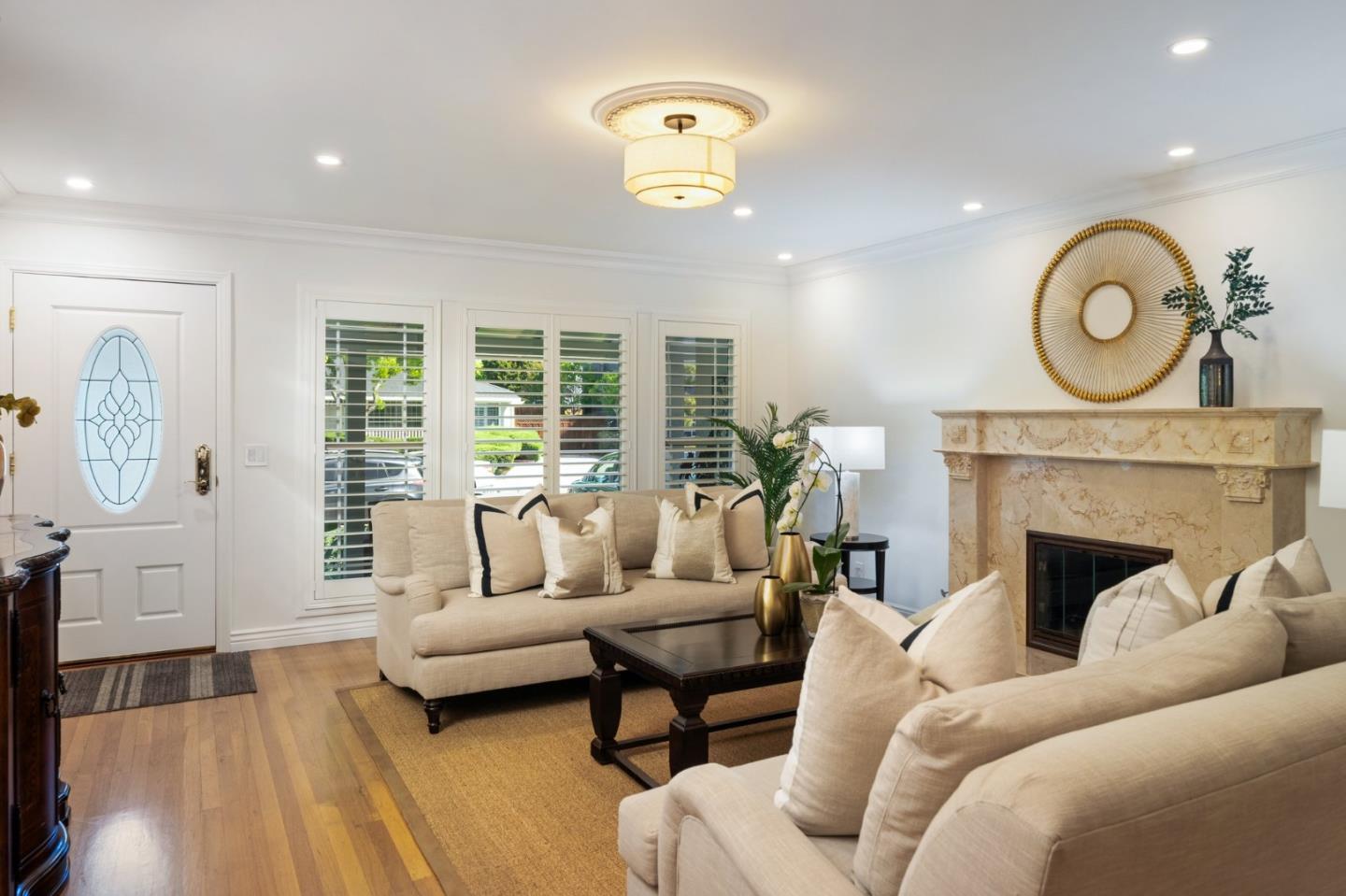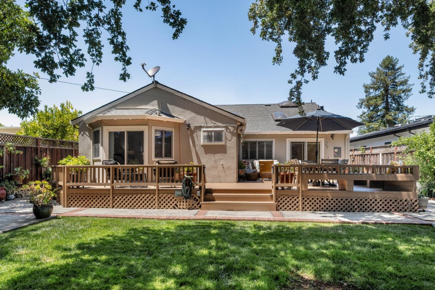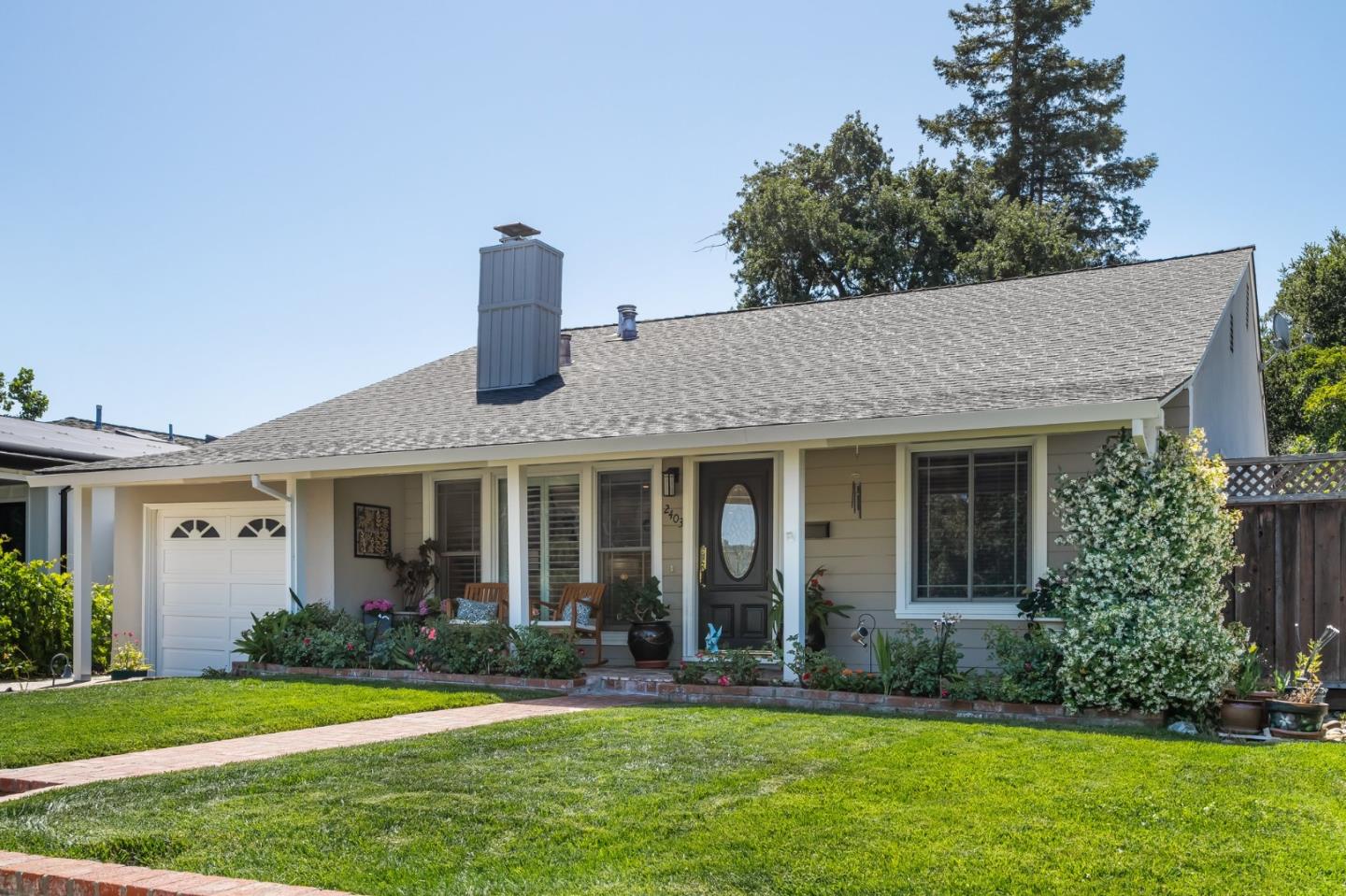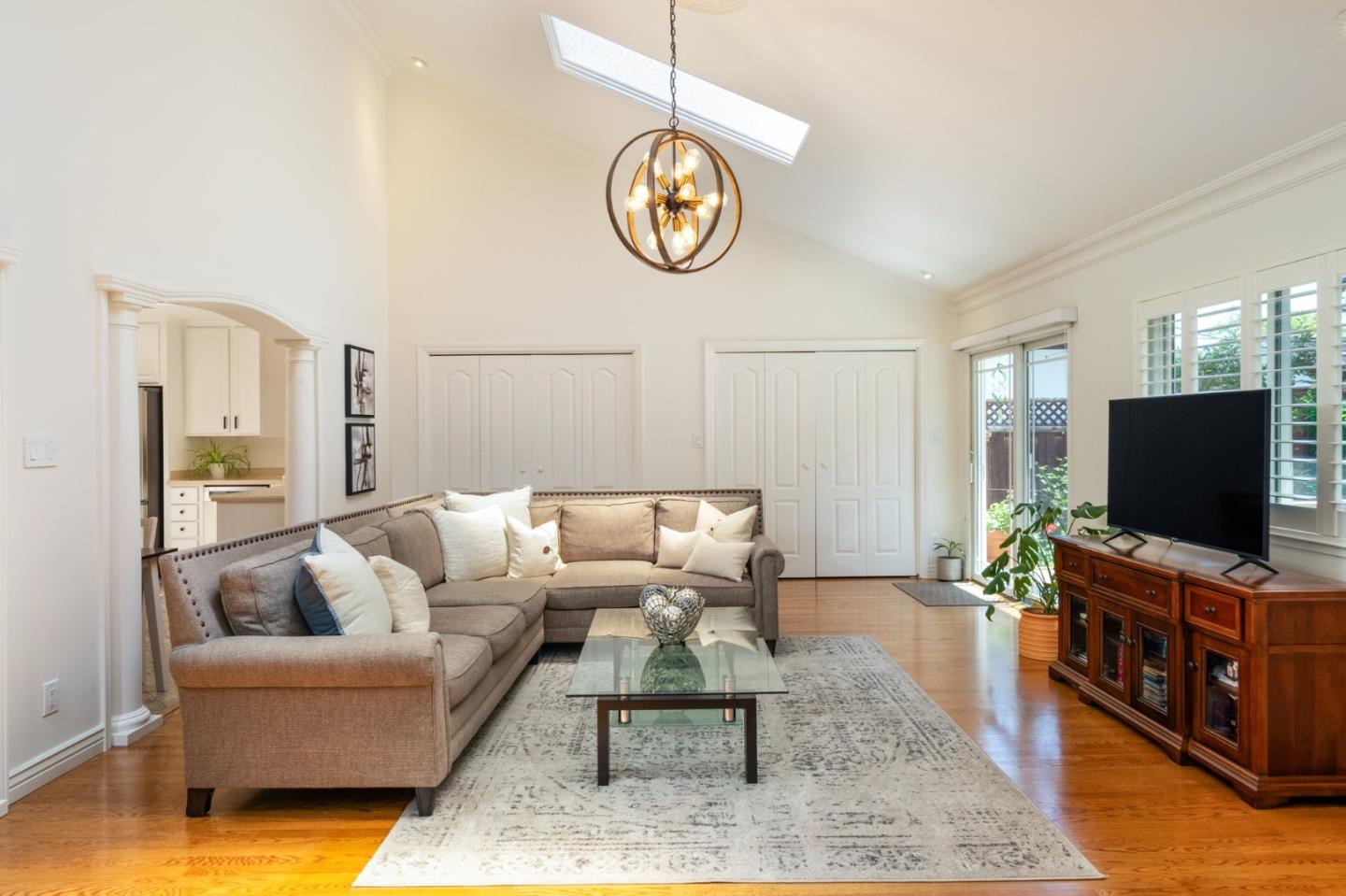A sophisticated example of one-level living- from the soaring vaulted ceilings, skylights, plus rich detail with elevated design features through out. Situated on a sought after tree-lined street in the sunny Woodside Plaza Neighborhood of Redwood City, known for it's easy to navigate streets, proximity to dining, shopping, commute routes, parks, and a that "neighborly" feel so many seek out. Charming brick accents and the perfect front porch for enjoying morning coffee even on the few rainy days. Inside, experience the warm hardwood floors, with a formal living room centered around a gas fireplace welcoming you to experience the home's versatile floorplan revealing itself, each room more impressive than the next. The dining room is flanked by dramatic columns. Radiating from the core of the home, is a bedroom hall with two large sun-filled bedrooms, making use of a hall bath with tile stall shower. The kitchen is flooded with natural light via large skylight & has a gas range, plus unload groceries easily with the convenience of the attached garage. Off the kitchen is the grand family room with soaring ceiling dual skylights, interior laundry, and a half bath. A spacious primary suite has ample closets, an upgraded bath, and is open to the large back deck and park-like yard.