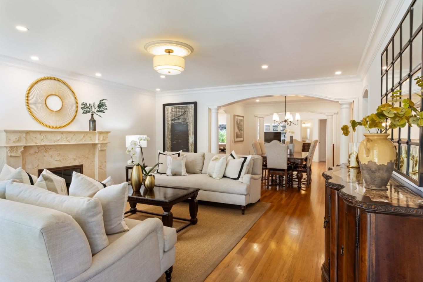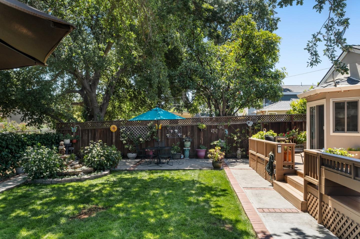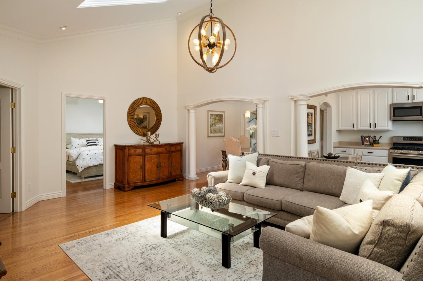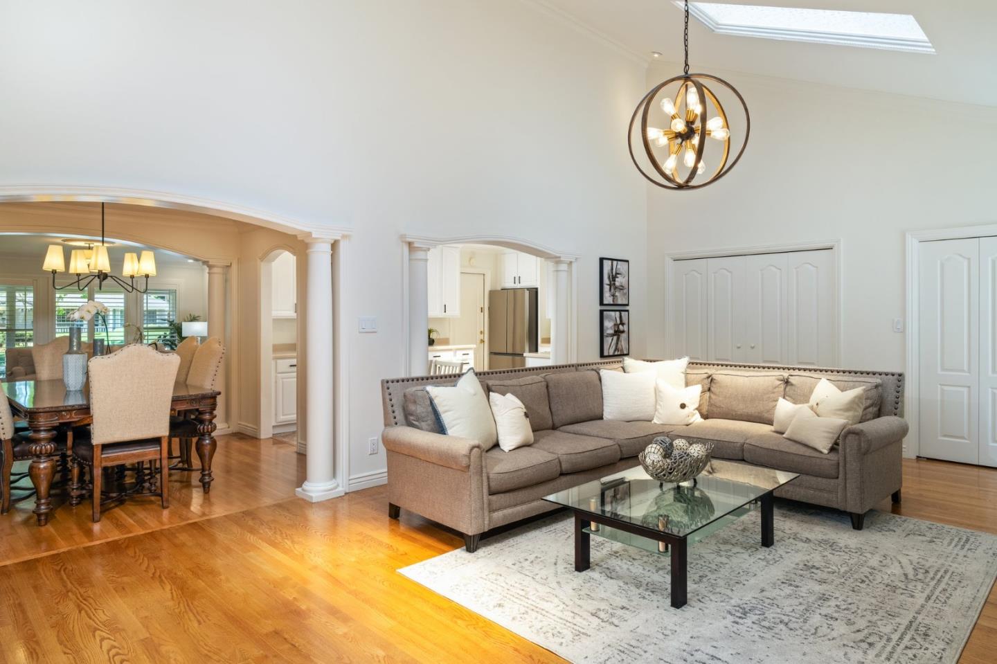 A sophisticated example of one-level living- from the soaring vaulted ceilings, skylights, plus rich detail with elevated design features through out. Situated on a sought after tree-lined street in the sunny Woodside Plaza Neighborhood of Redwood City, known for it's easy to navigate streets, proximity to dining, shopping, commute routes, parks, and a that "neighborly" feel so many seek out. Charming brick accents and the perfect front porch for enjoying morning coffee even on the few rainy days. Inside, experience the warm hardwood floors, with a formal living room centered around a gas fireplace welcoming you to experience the home's versatile floorplan revealing itself, each room more impressive than the next. The dining room is flanked by dramatic columns. Radiating from the core of the home, is a bedroom hall with two large sun-filled bedrooms, making use of a hall bath with tile stall shower. The kitchen is flooded with natural light via large skylight & has a gas range, plus unload groceries easily with the convenience of the attached garage. Off the kitchen is the grand family room with soaring ceiling dual skylights, interior laundry, and a half bath. A spacious primary suite has ample closets, an upgraded bath, and is open to the large back deck and park-like yard.