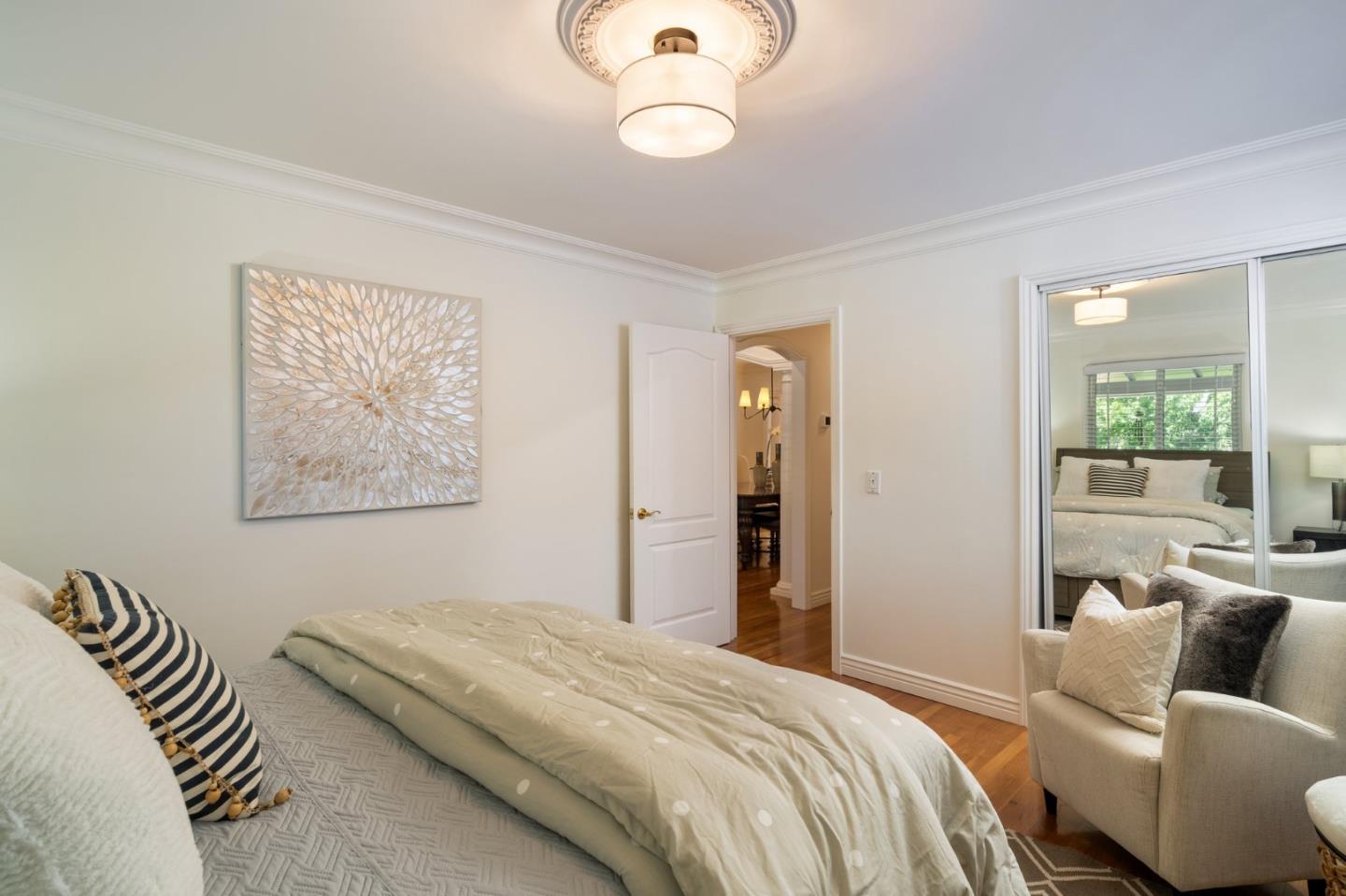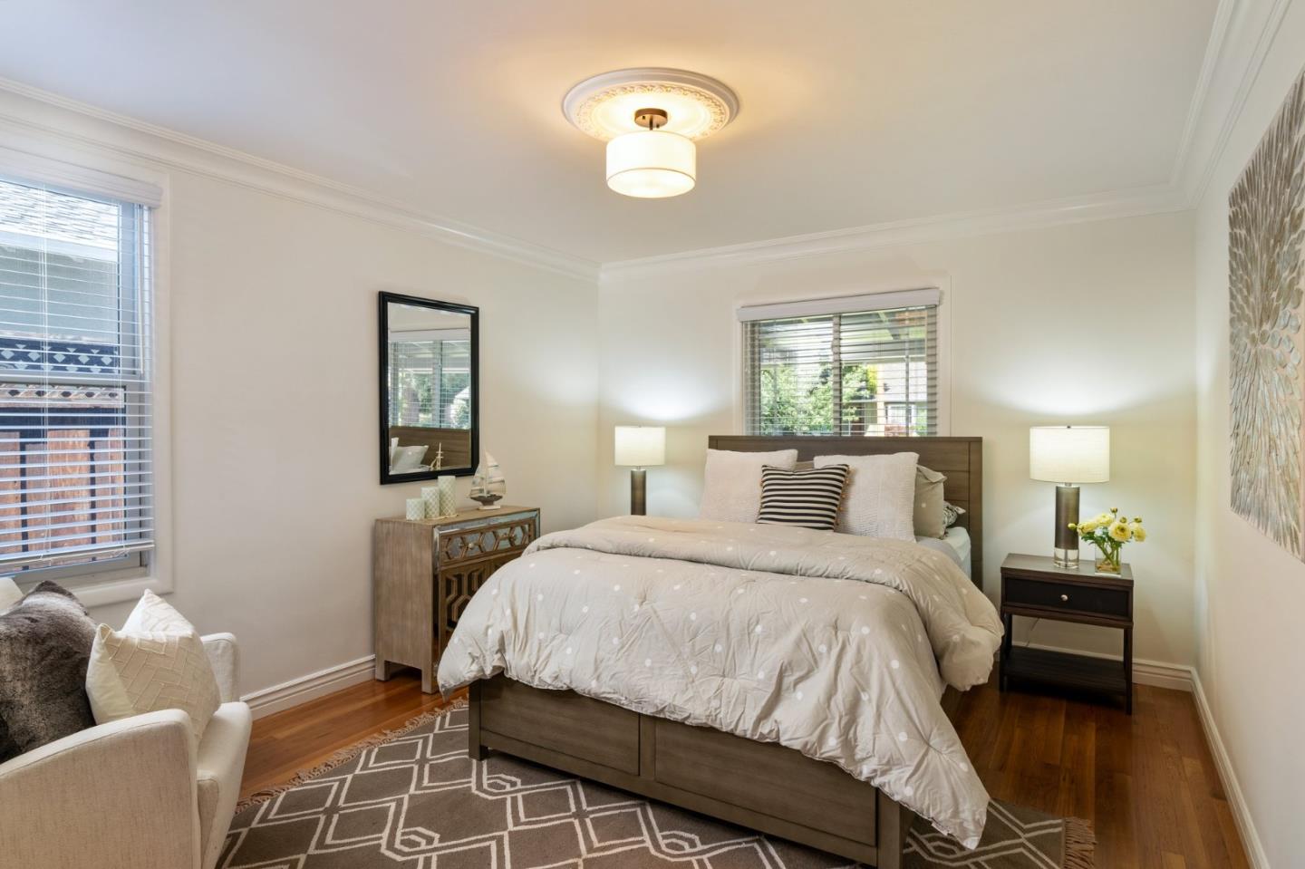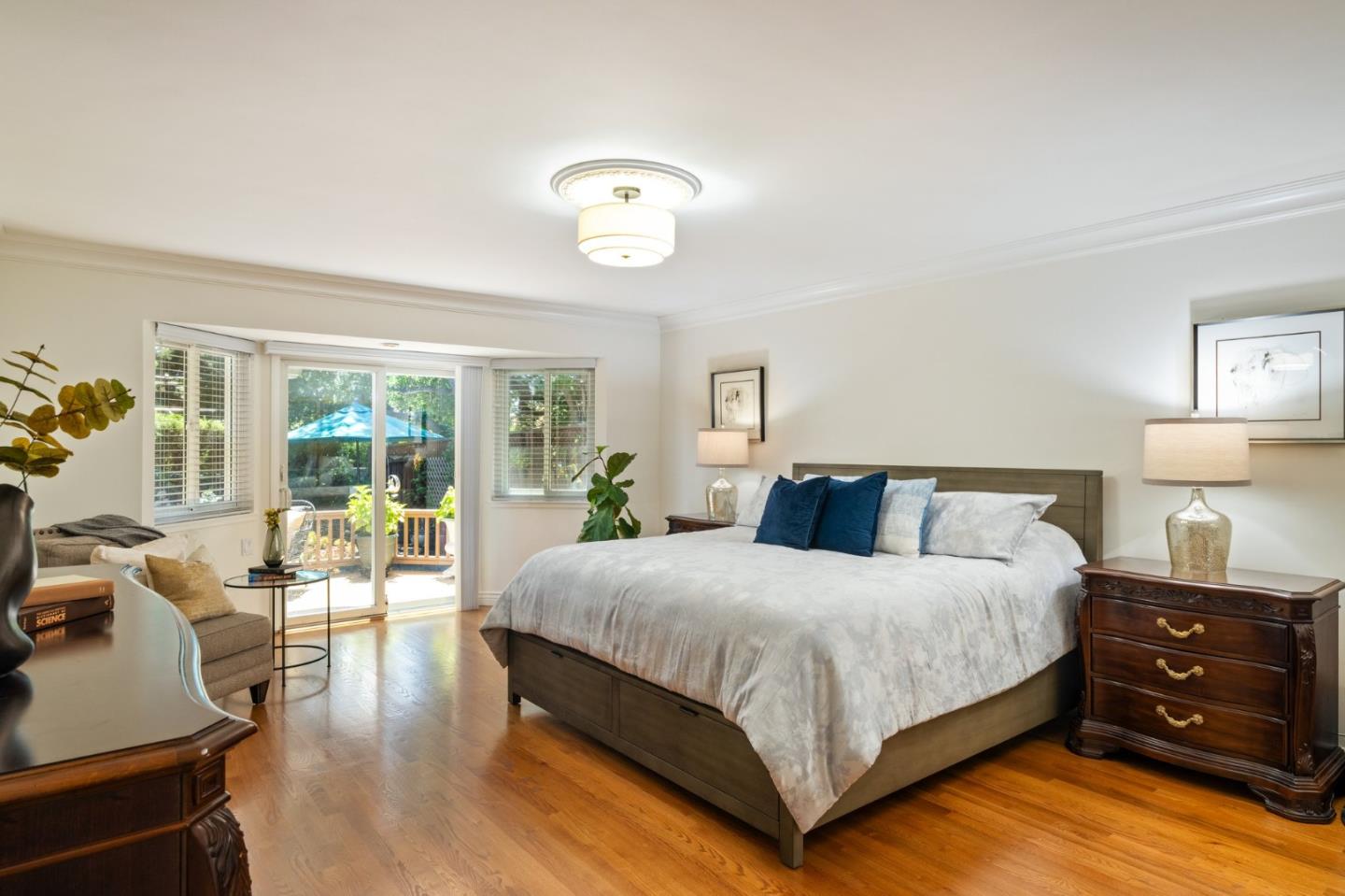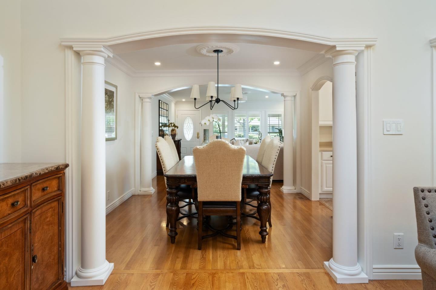 A sophisticated example of one-level living- from the soaring vaulted ceilings, skylights, plus rich detail with elevated design features through out. Situated on a sought after tree-lined street in the sunny Woodside Plaza Neighborhood of Redwood City, known for it's easy to navigate streets, proximity to dining, shopping, commute routes, parks, and a that "neighborly" feel so many seek out. Charming brick accents and the perfect front porch for enjoying morning coffee even on the few rainy days. Inside, experience the warm hardwood floors, with a formal living room centered around a gas fireplace welcoming you to experience the home's versatile floorplan revealing itself, each room more impressive than the next. The dining room is flanked by dramatic columns. Radiating from the core of the home, is a bedroom hall with two large sun-filled bedrooms, making use of a hall bath with tile stall shower. The kitchen is flooded with natural light via large skylight & has a gas range, plus unload groceries easily with the convenience of the attached garage. Off the kitchen is the grand family room with soaring ceiling dual skylights, interior laundry, and a half bath. A spacious primary suite has ample closets, an upgraded bath, and is open to the large back deck and park-like yard.