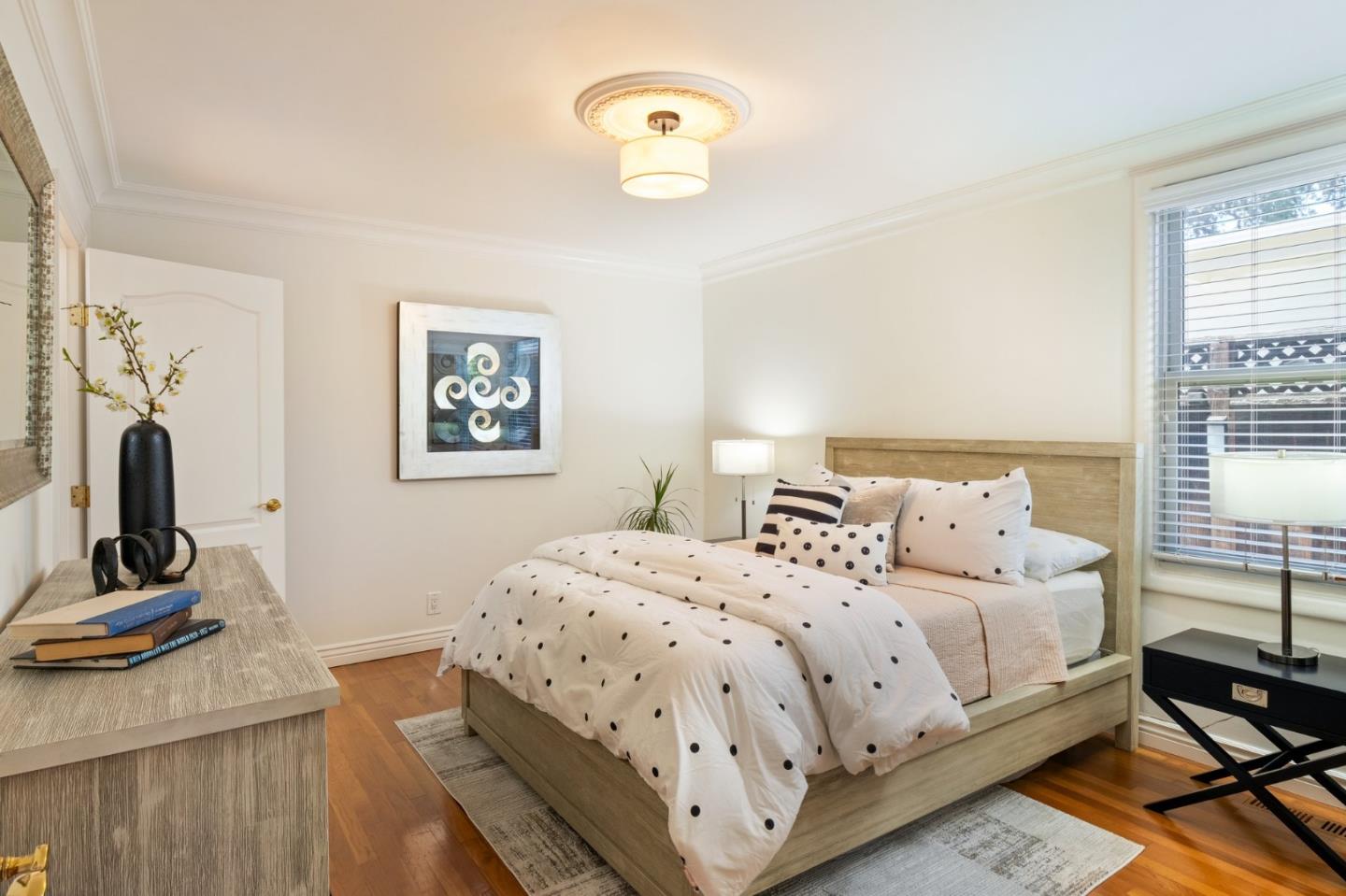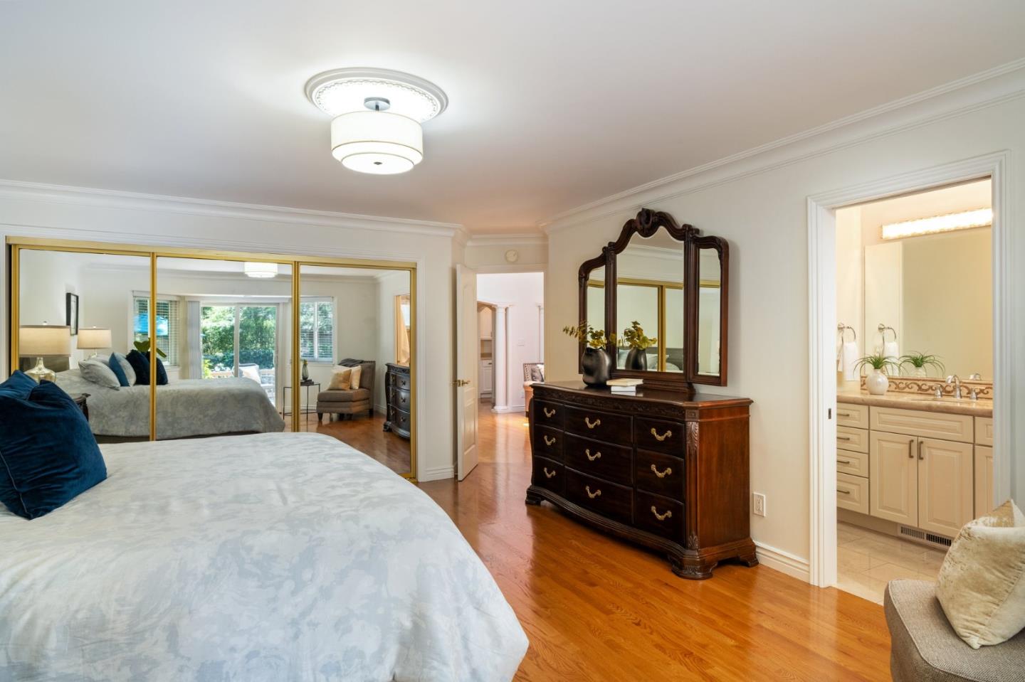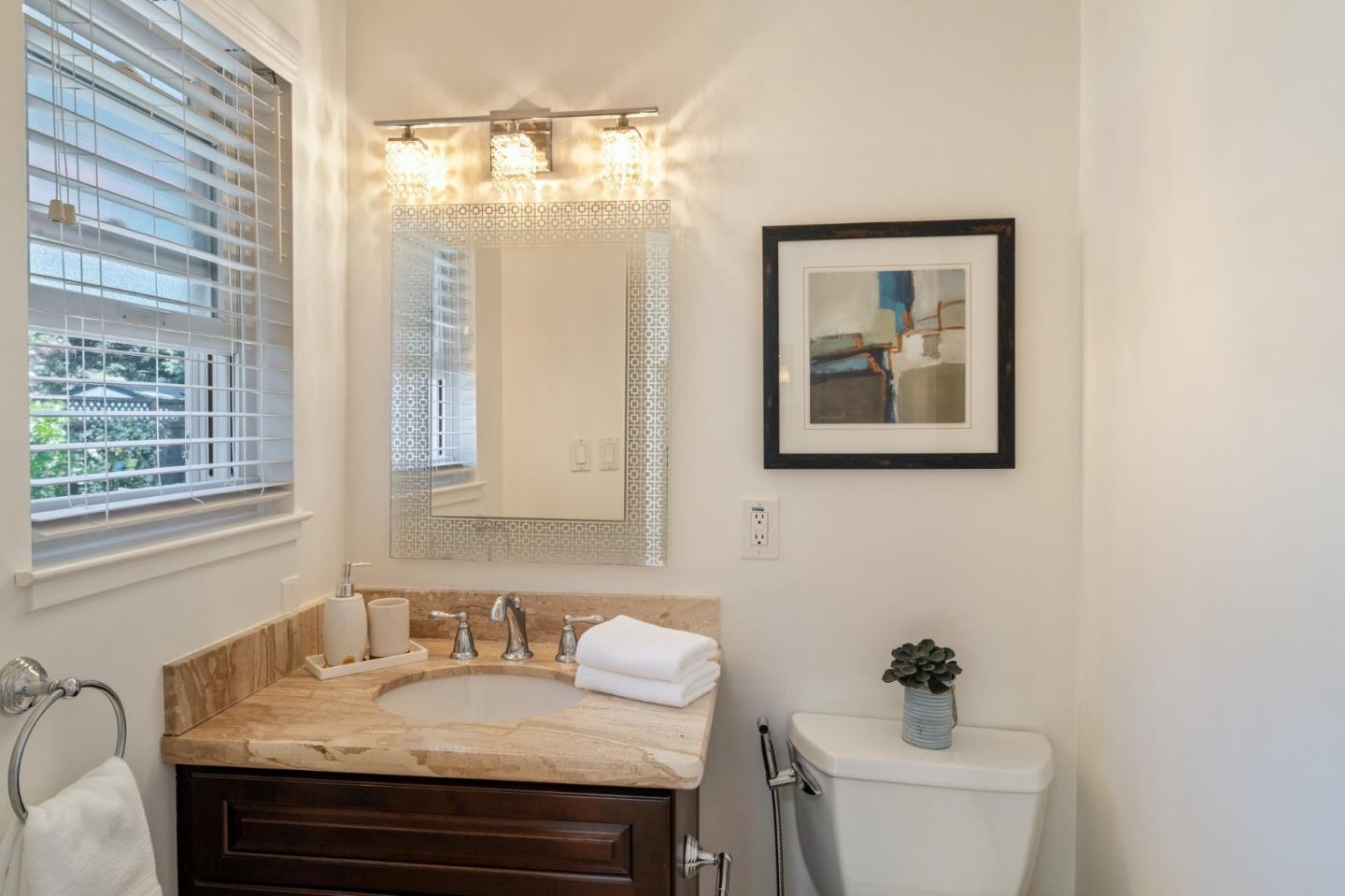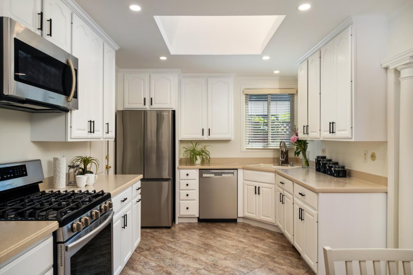 A sophisticated example of one-level living- from the soaring vaulted ceilings, skylights, plus rich detail with elevated design features through out. Situated on a sought after tree-lined street in the sunny Woodside Plaza Neighborhood of Redwood City, known for it's easy to navigate streets, proximity to dining, shopping, commute routes, parks, and a that "neighborly" feel so many seek out. Charming brick accents and the perfect front porch for enjoying morning coffee even on the few rainy days. Inside, experience the warm hardwood floors, with a formal living room centered around a gas fireplace welcoming you to experience the home's versatile floorplan revealing itself, each room more impressive than the next. The dining room is flanked by dramatic columns. Radiating from the core of the home, is a bedroom hall with two large sun-filled bedrooms, making use of a hall bath with tile stall shower. The kitchen is flooded with natural light via large skylight & has a gas range, plus unload groceries easily with the convenience of the attached garage. Off the kitchen is the grand family room with soaring ceiling dual skylights, interior laundry, and a half bath. A spacious primary suite has ample closets, an upgraded bath, and is open to the large back deck and park-like yard.