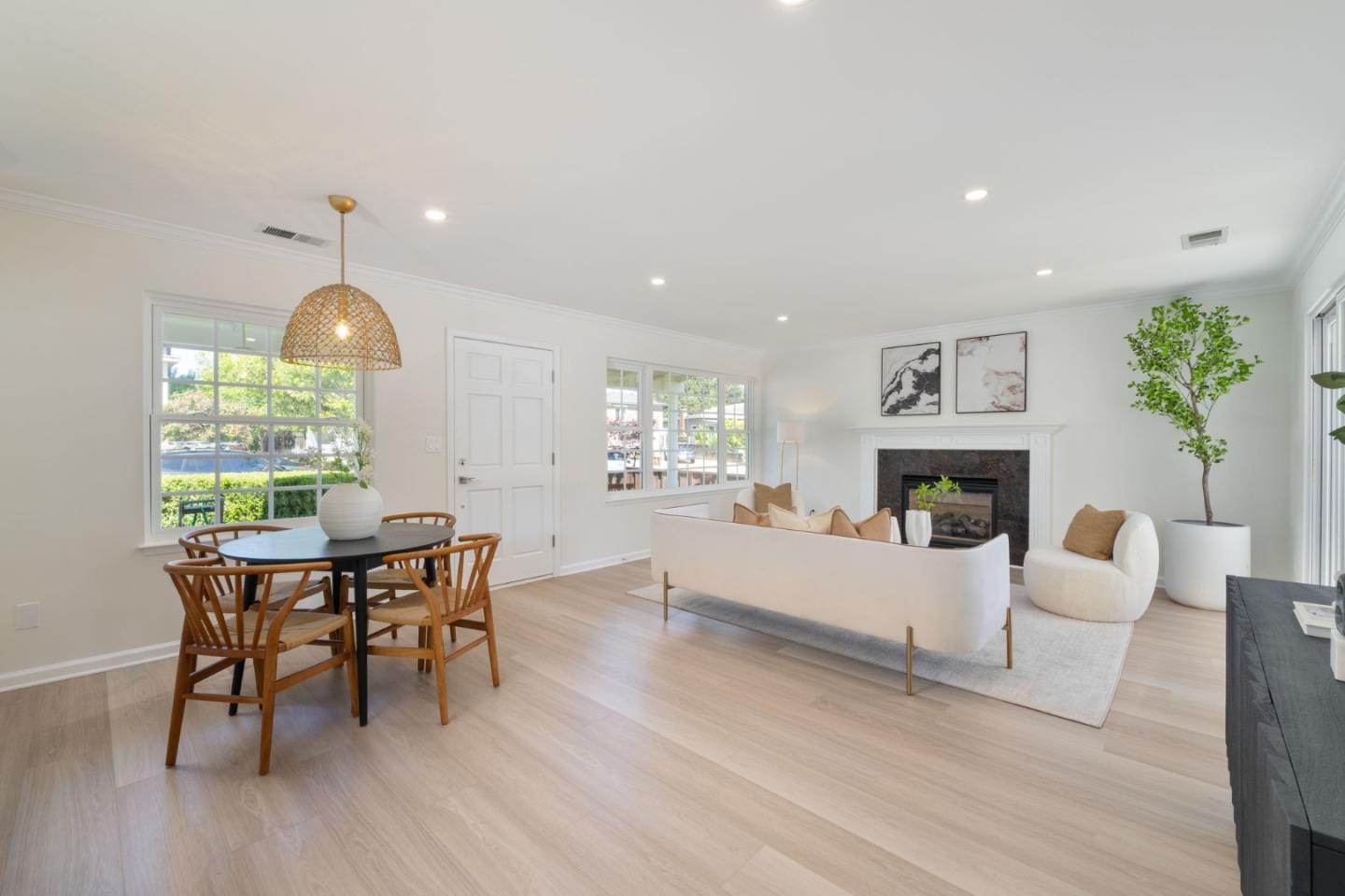 Located in the sought after Woodside Plaza, with easy access to parks, shopping, restaurants, and prime commuting routes- making this an ideal location. Experience this recently updated home, with solid-surface flooring throughout, recessed lighting, and contemporary finishes. The livingroom centers around a charming gas fireplace and enjoys access to the lush park-like backyard & spacious patio. A versatile dining area flows nicely to the kitchen with gas cooktop with hood, built-in oven and new quartz countertops. The large attached garage makes bringing in groceries a convenient snap, has laundry hook-ups and makes for exceptional storage solutions. Three sun-drenched bedrooms access the updated bathroom finished in sleek tile. The home is bathed in tremendous sun-light, made useful with the installed solar panels adding to energy efficiency. Redwood City is known as an Ideal Silicon Valley Mid-Peninsula location with fabulous weather, and a central location making for easy commuting whether up or down the Peninsula. Nearby, experience vibrant Downtown Redwood City which has undergone a recent renaissance with exceptional cafes, restaurants, entertainment, and community events.