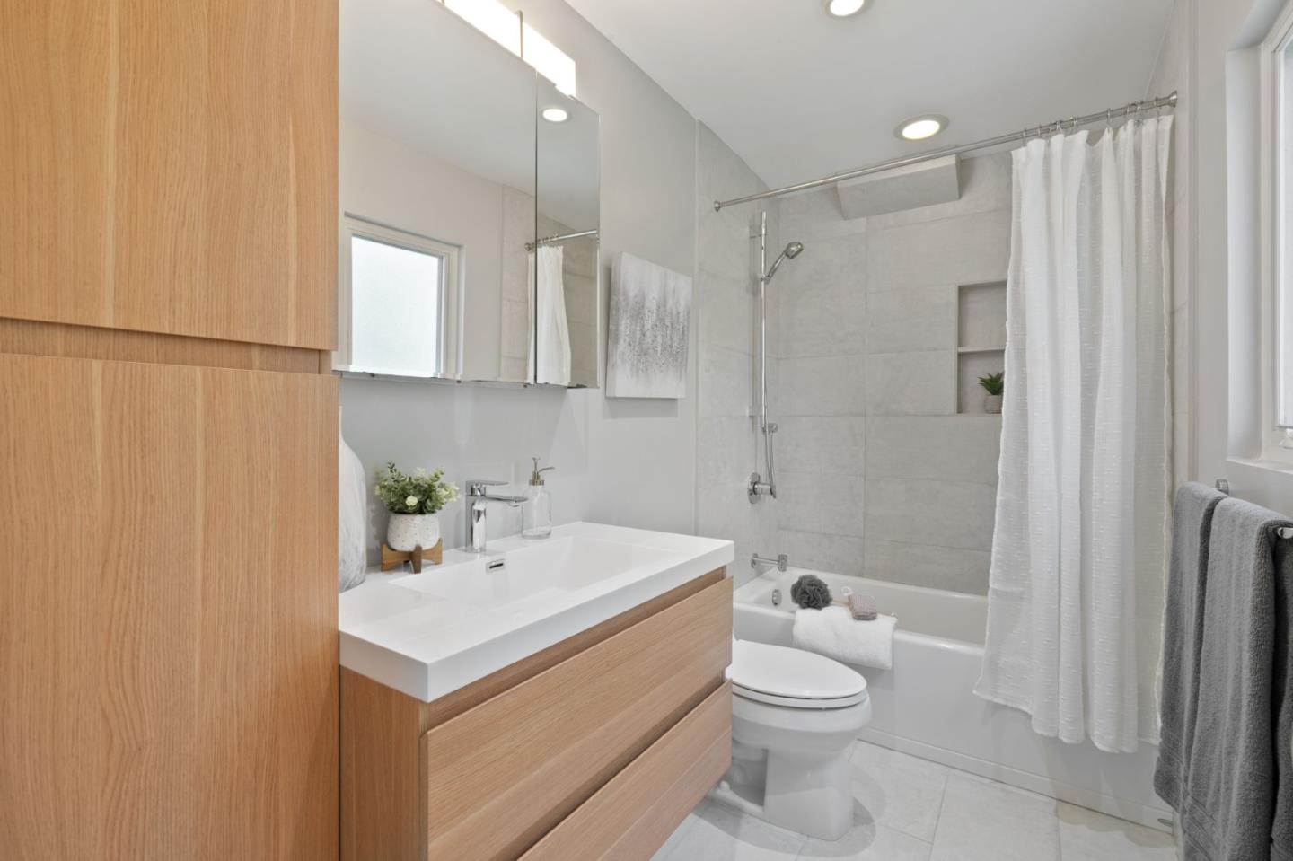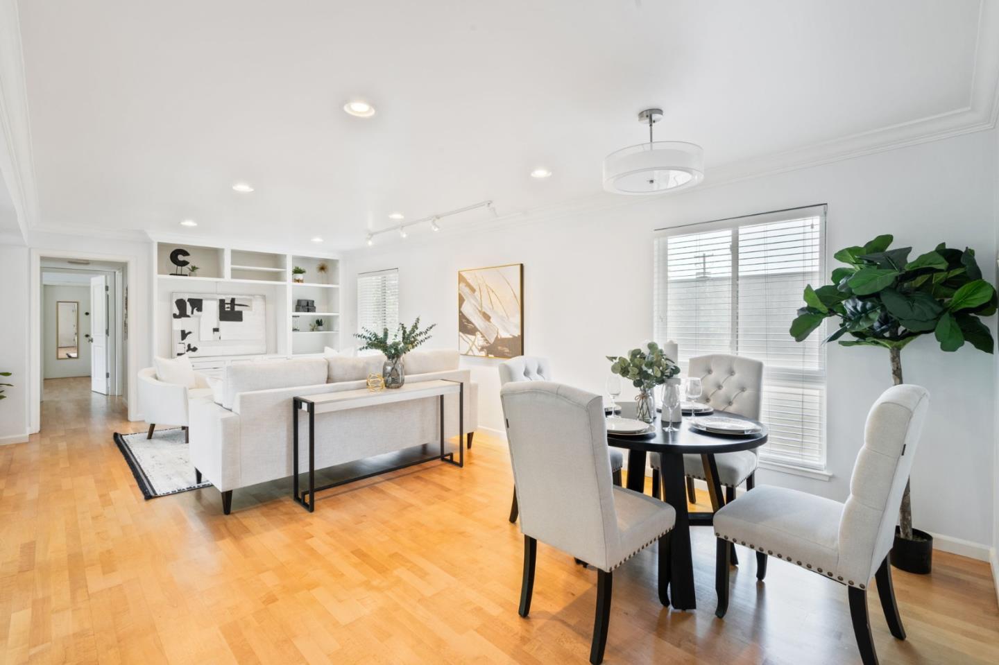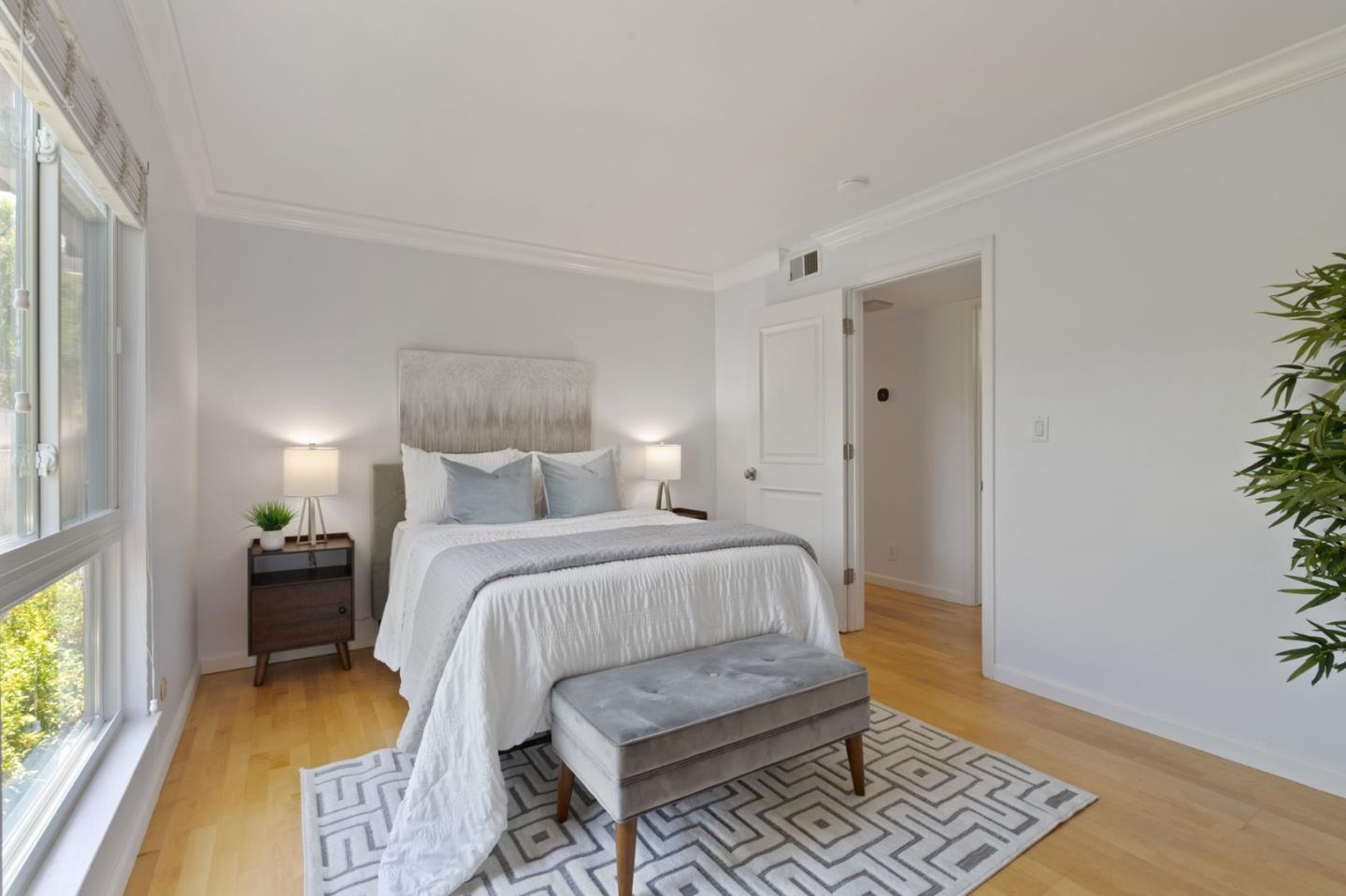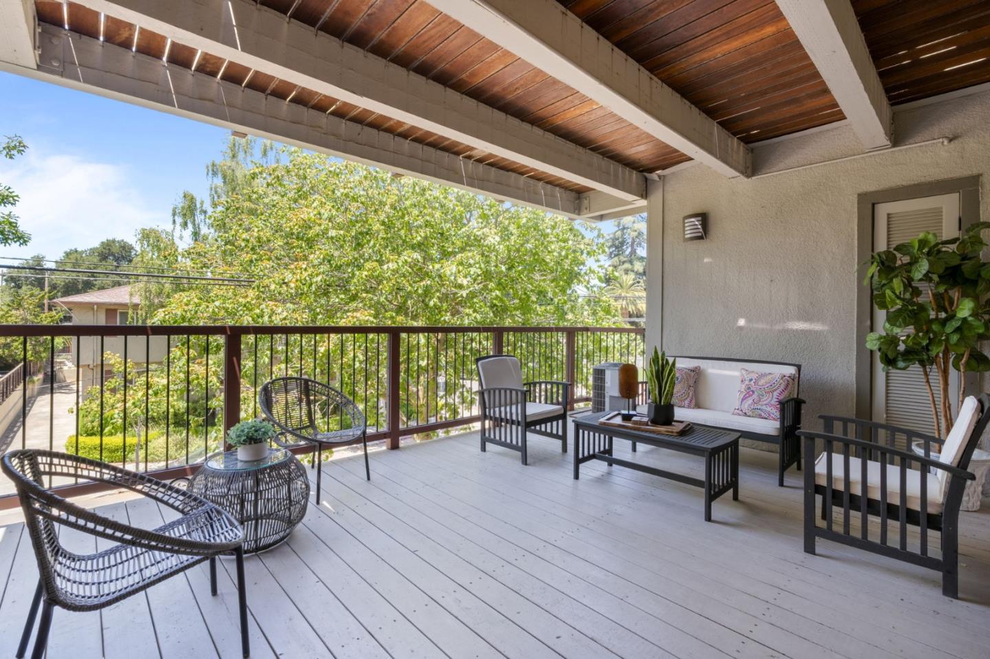 Immerse Yourself in Downtown Palo Alto's Vibrancy: Step into the heart of it all with this stunning, updated contemporary home in coveted Downtown Palo Alto. Bask in the California sunshine that pours through expansive windows on two sides, creating a light and airy haven. Unleash your inner chef in the sleek, updated kitchen with quartz countertops, stainless steel appliances, and a gas range. Entertain seamlessly with access to the spacious deck, perfect for al fresco dining and enjoying treetop views overlooking Johnson Park. Crown moldings, recessed lighting, and cleverly designed built-ins adding a touch of elegance and functionality. Two bright bedrooms, with the primary suite boasting a generous walk-in closet and luxurious en-suite bath featuring tub and shower. This boutique building offers a community laundry facility, secure access, and 2 dedicated parking spaces for your convenience + additional storage space. Live the Downtown lifestyle: Just blocks from the dynamic University Ave corridor with exceptional restaurants, shops, and entertainment. Hop on the Caltrain for a seamless commute, or explore nearby amenities like Whole Foods, Stanford Shopping Center, and acclaimed schools. This is your chance to experience the best of Palo Alto living.