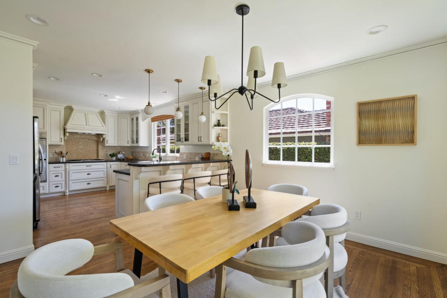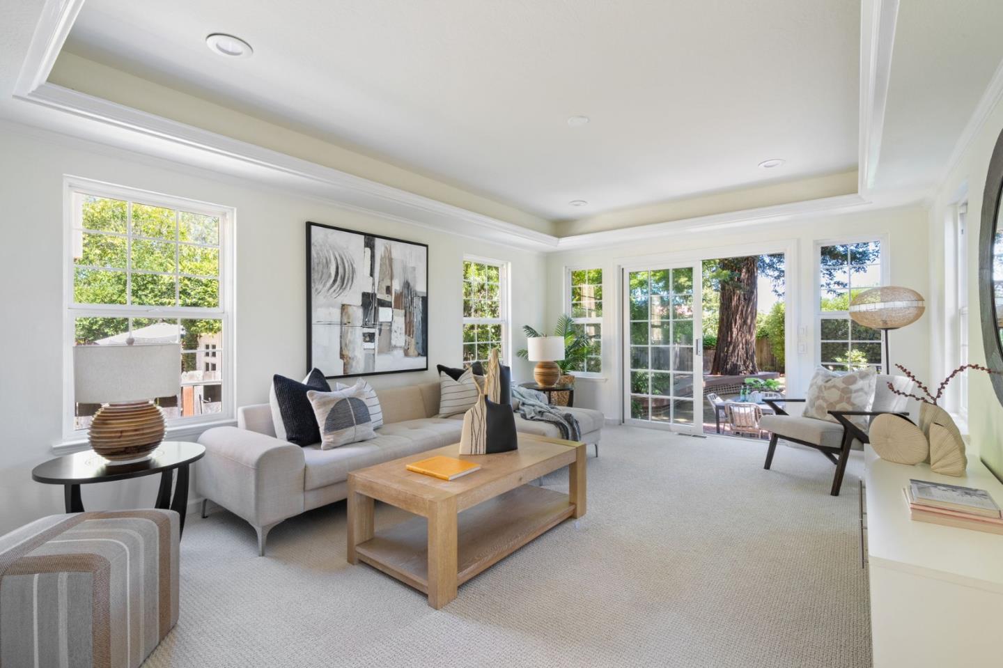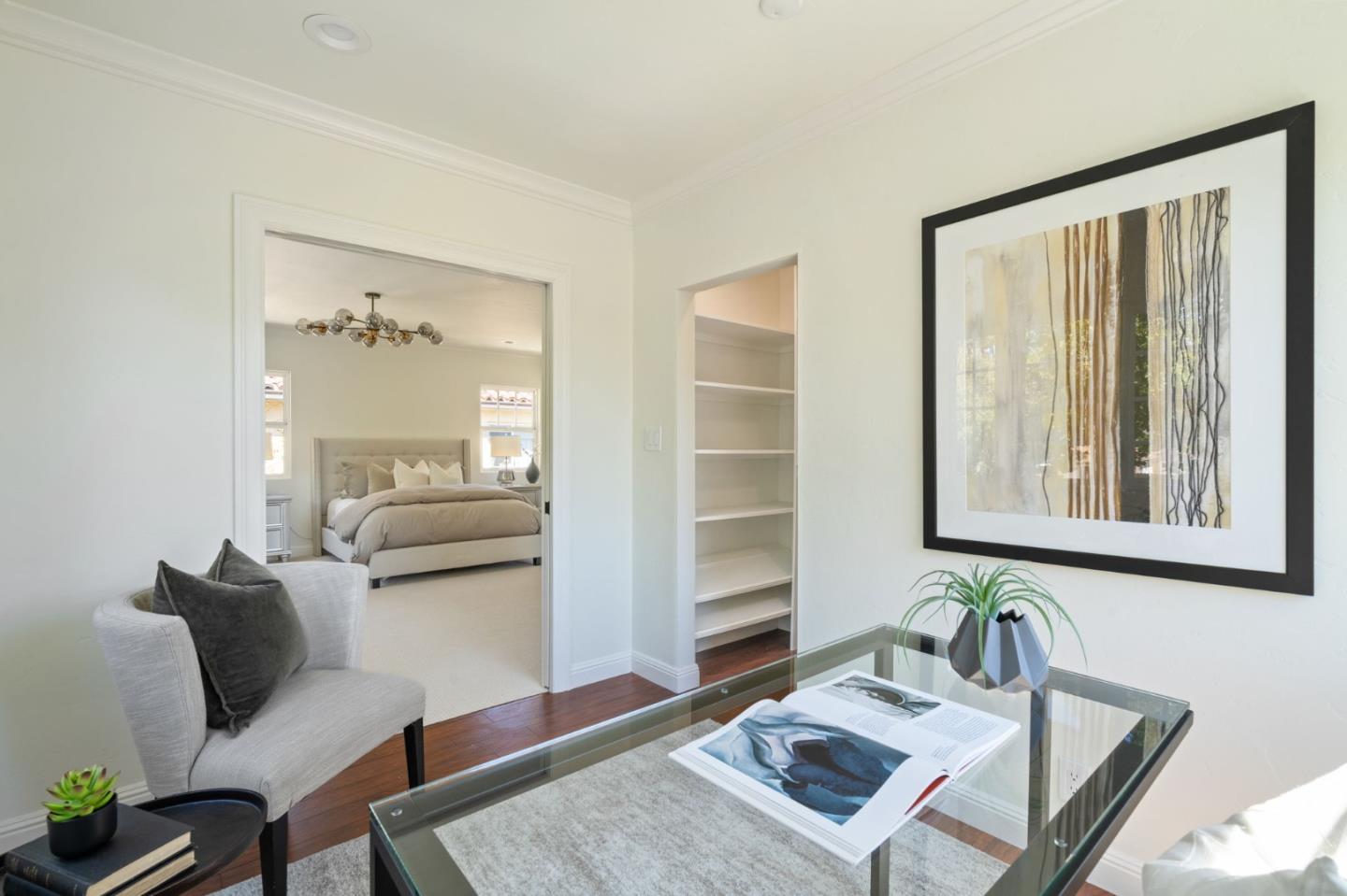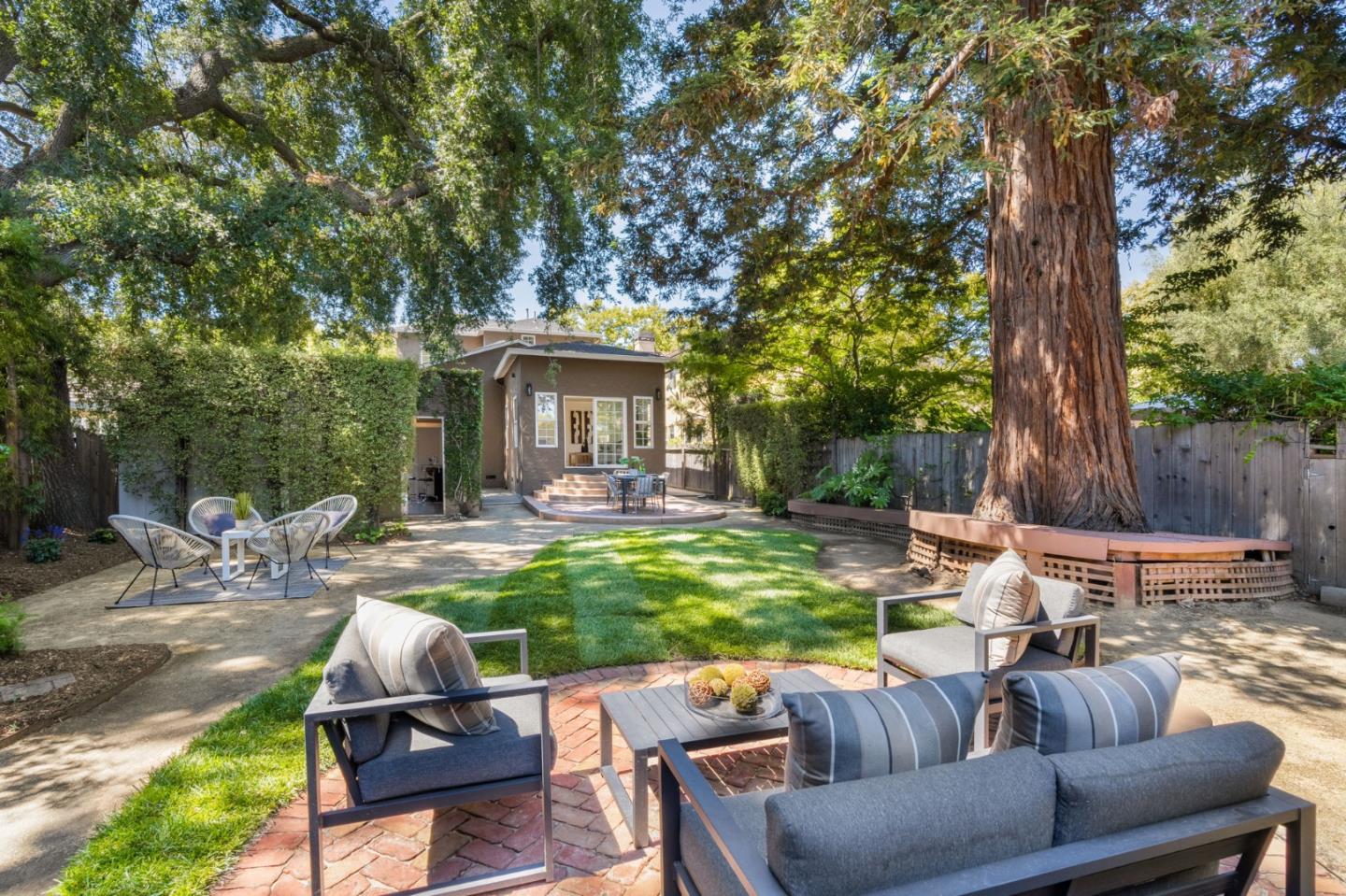 Thoughtfully reimagined Mt. Carmel home situated on a picturesque tree-lined street, on one of the most sought-after blocks in Redwood City. Rich hardwood floors welcome you inside, as light floods the spaces on all sides. The formal living area has coved ceilings, and elegant details, all situated around a cozy fireplace. The spacious chef's kitchen has a farmhouse sink, gas range, double ovens, and a great peninsula with seating area, and a bright dining space. The main level has 3 spacious bedrooms, two full baths each with custom details and a family room with tray ceiling and sliding glass doors that open to the large private backyard with grassy yard, large paved patio, storage shed, and detached garage- perfect for flex space or storage. Back inside, just off the side door is a great mud-room area with laundry closet. Upstairs is the full-floor primary suite with bright sun exposure, walk-in closets, bonus space, and an attached full bath. Enjoy this prominent location just moments from popular schools, parks, Whole Foods, exciting Downtown Redwood City, and convenient commuting locations.