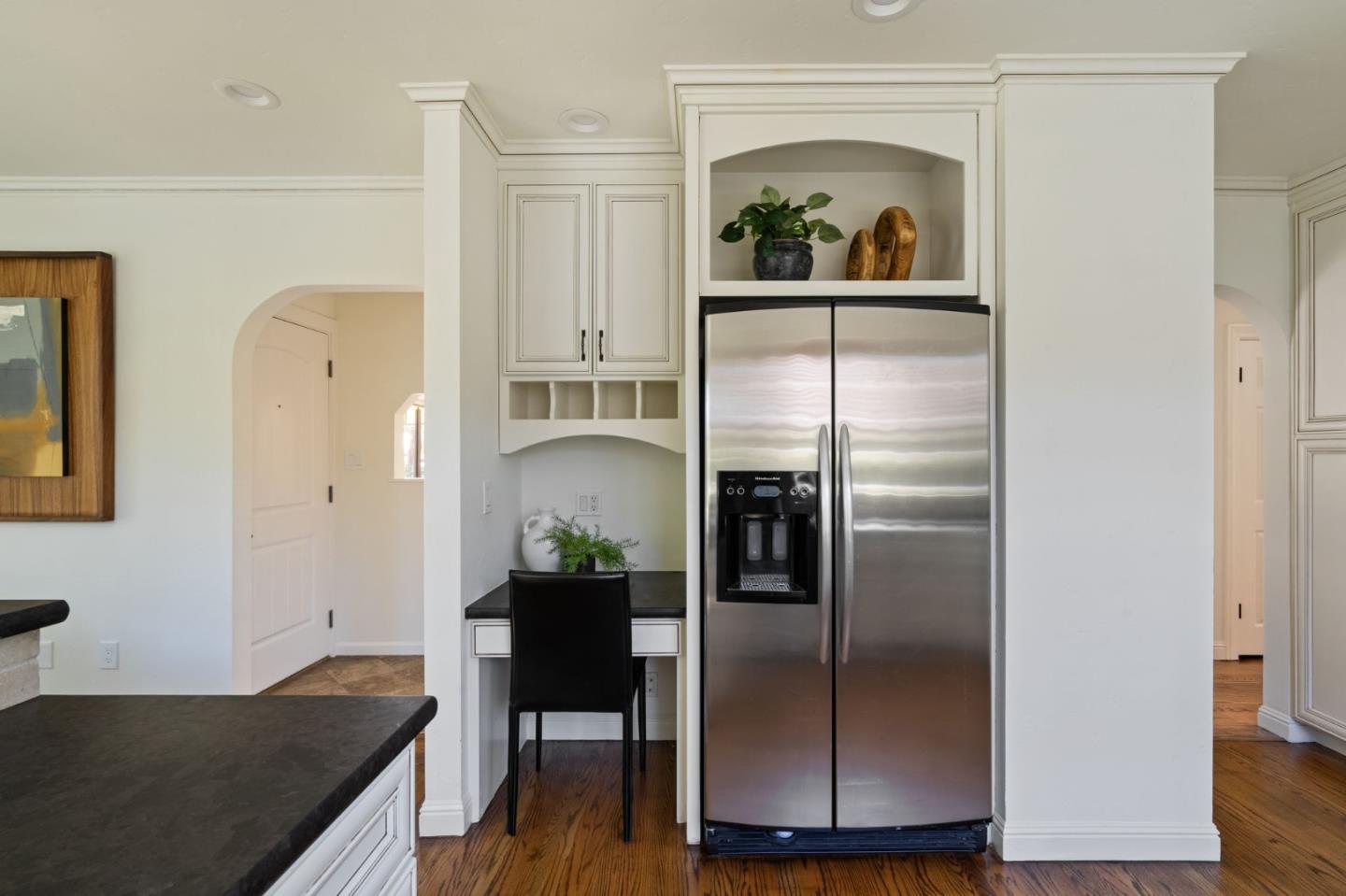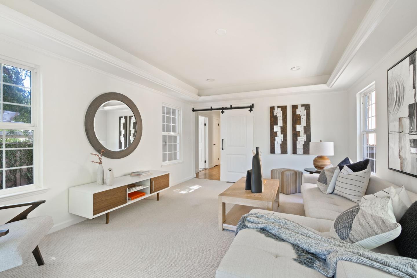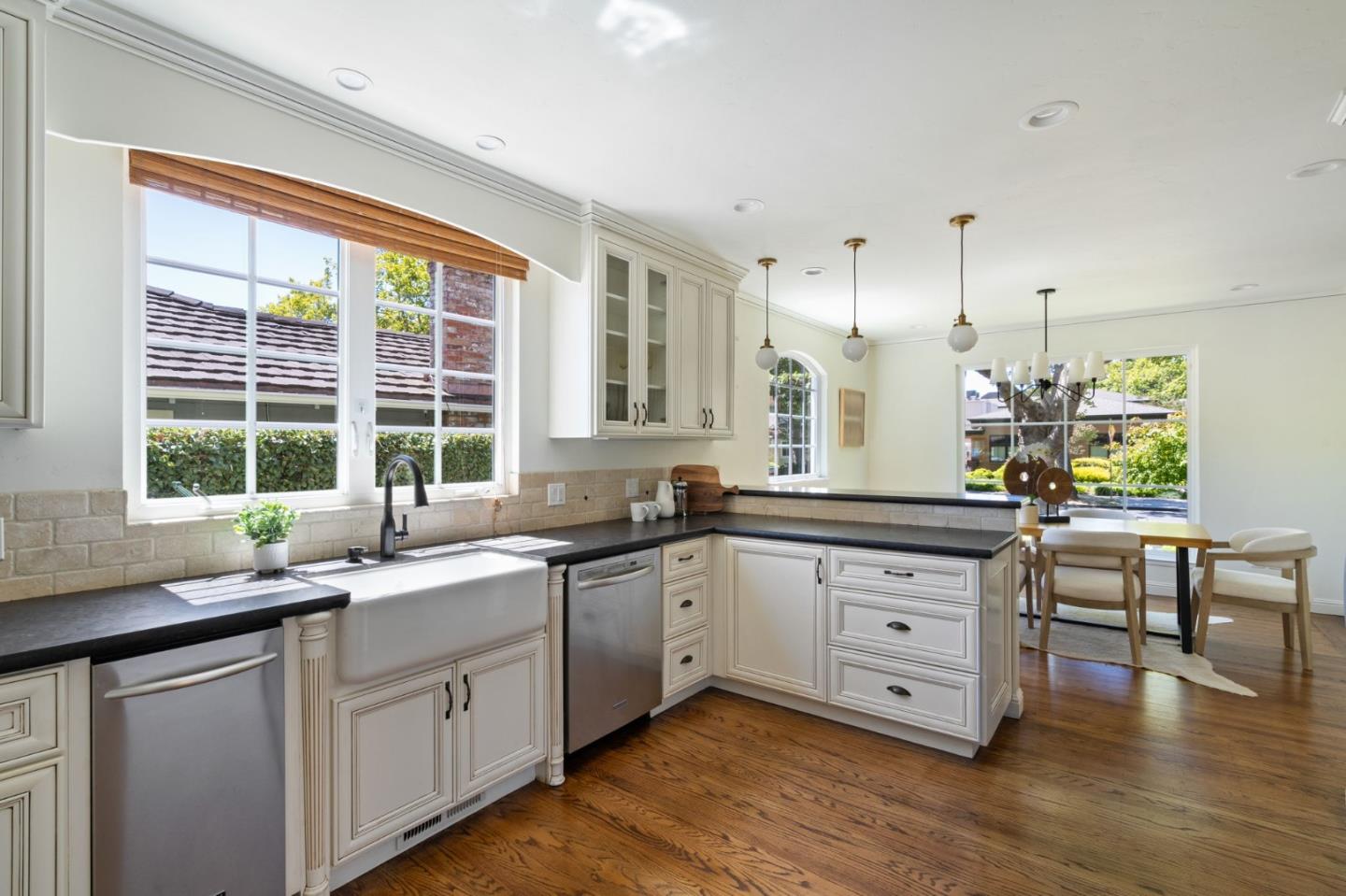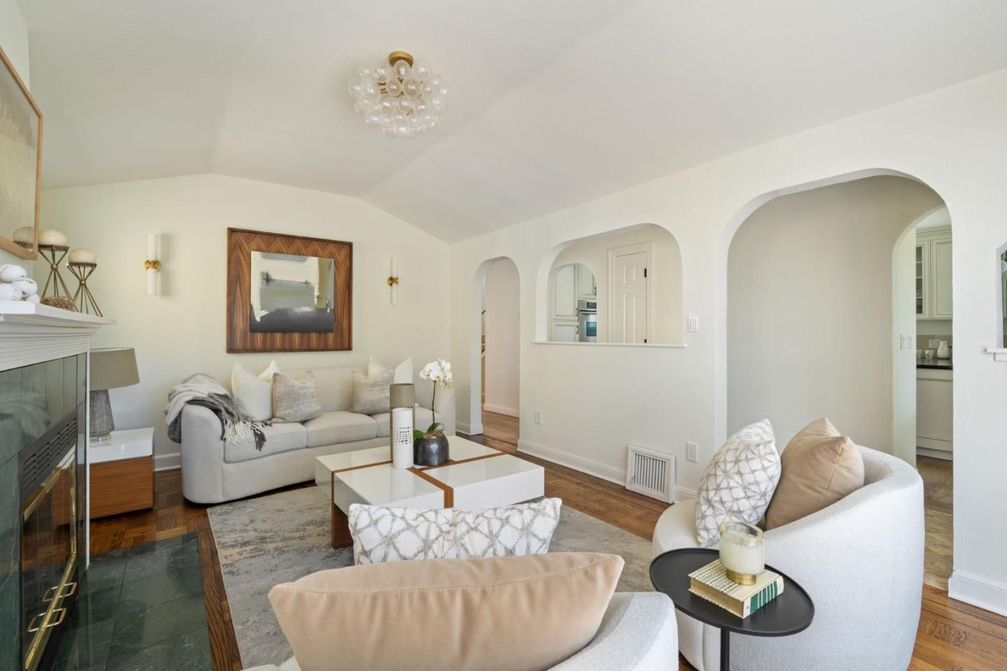 Thoughtfully reimagined Mt. Carmel home situated on a picturesque tree-lined street, on one of the most sought-after blocks in Redwood City. Rich hardwood floors welcome you inside, as light floods the spaces on all sides. The formal living area has coved ceilings, and elegant details, all situated around a cozy fireplace. The spacious chef's kitchen has a farmhouse sink, gas range, double ovens, and a great peninsula with seating area, and a bright dining space. The main level has 3 spacious bedrooms, two full baths each with custom details and a family room with tray ceiling and sliding glass doors that open to the large private backyard with grassy yard, large paved patio, storage shed, and detached garage- perfect for flex space or storage. Back inside, just off the side door is a great mud-room area with laundry closet. Upstairs is the full-floor primary suite with bright sun exposure, walk-in closets, bonus space, and an attached full bath. Enjoy this prominent location just moments from popular schools, parks, Whole Foods, exciting Downtown Redwood City, and convenient commuting locations.