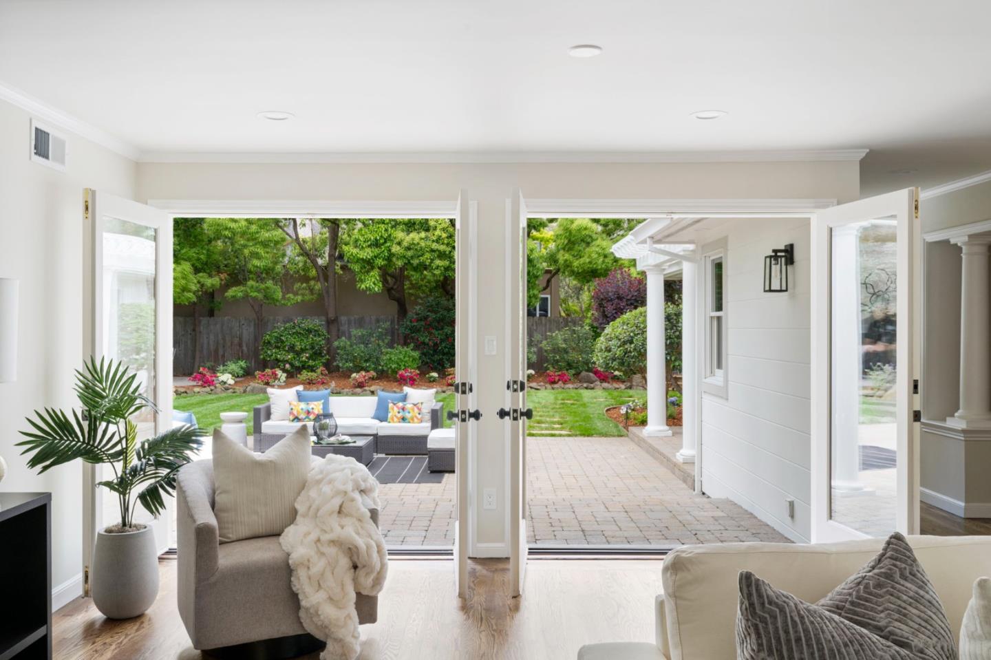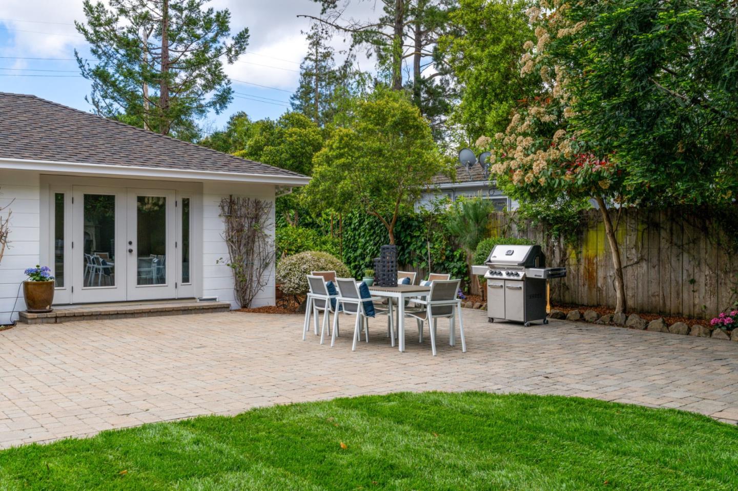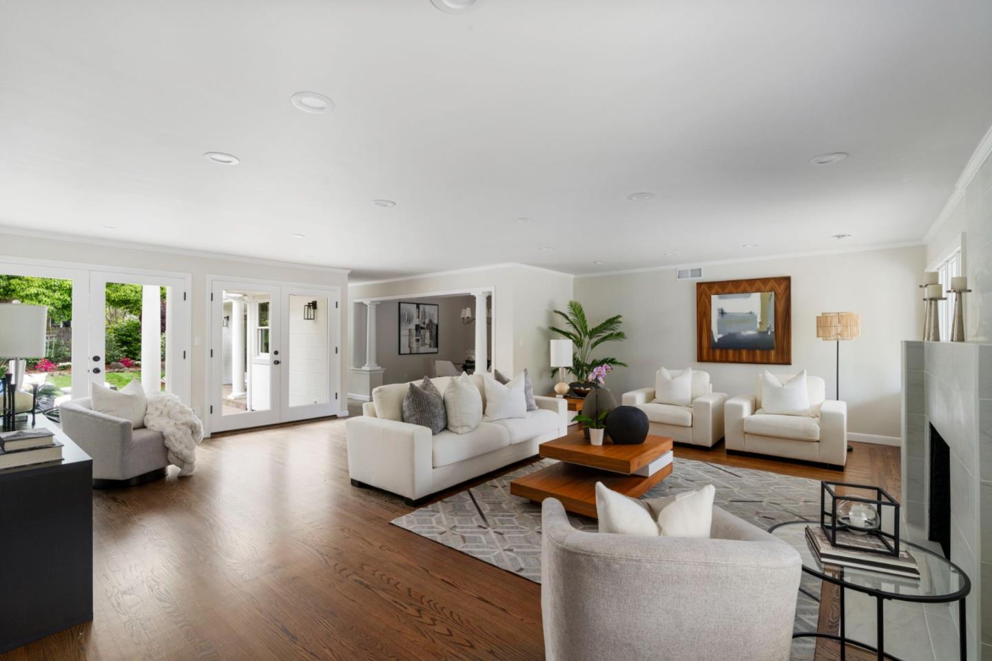 A rare opportunity nestled on the border of Atherton, this more than quarter acre property with an elegant single-story home awaits behind the gates. A comfortable California-living floor plan that flows effortlessly both inside and out. Conveniently situated on a tree-lined street just off Woodside Shopping Plaza with easy access to Hwys 280, 101, and Downtowns Menlo Park and Redwood City. Outside, enjoy sprawling space including numerous seating areas plus privacy. Inside, experience rich hardwood floors, a welcoming family room, a dedicated dining room, and a grand great room. The chef's kitchen with gas stove, convenient island, and just off the upgraded two car garage, a multipurpose laundry/ bonus kitchen area. The kitchen is open to the bright family room with vaulted ceiling, skylight, fireplace, wet bar, sub zero wine refrigerators, and built ins. With two en-suite bedrooms, one is privately situated, with the 2nd as primary suite situated in the main bedroom wing of the home which includes walk-in closet and spacious bath. Two additional large bedrooms access an upgraded hall bath. Numerous doors open to the tranquil backyard. This light and bright home has recessed lighting and central cooling and heating.