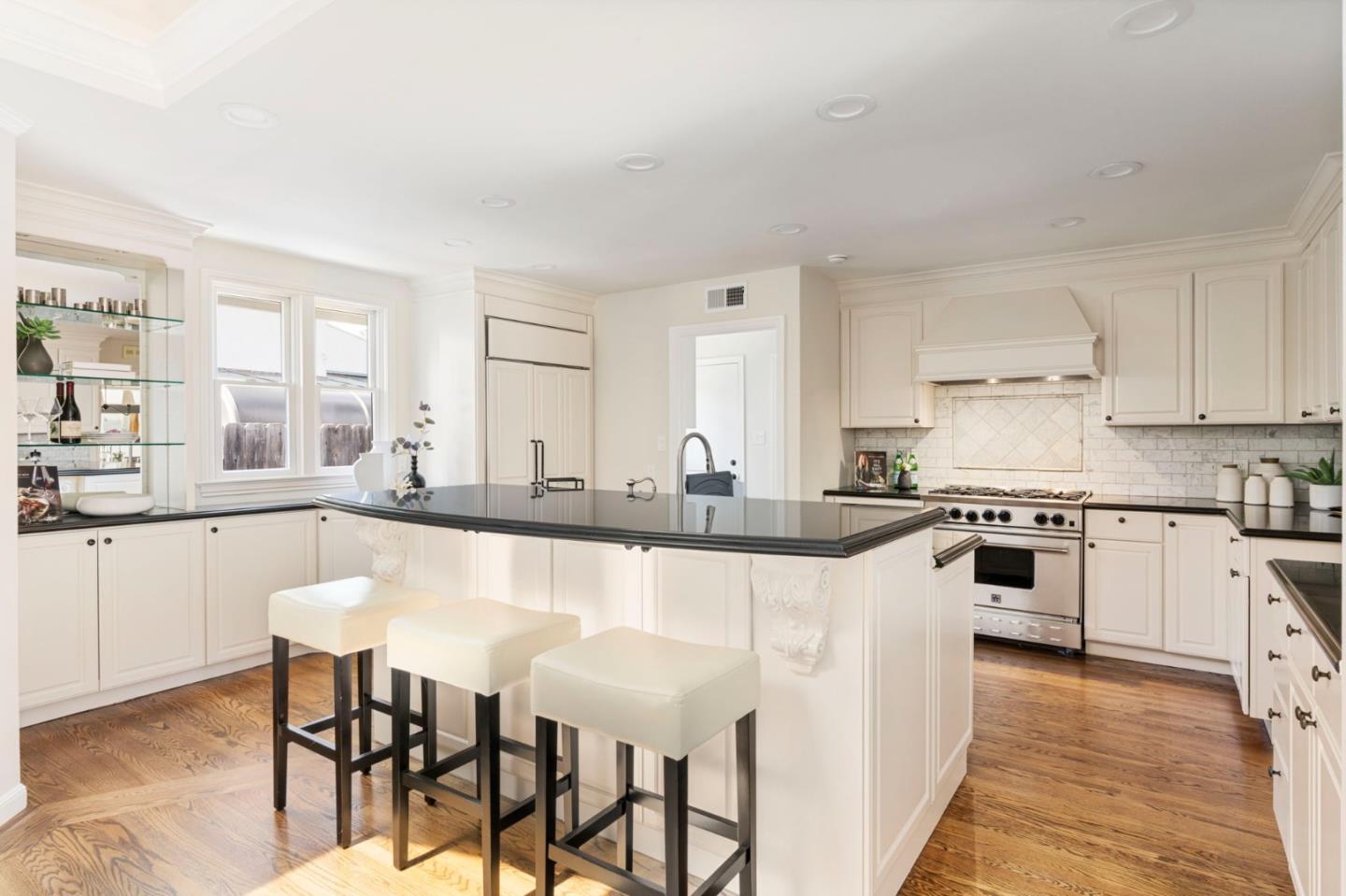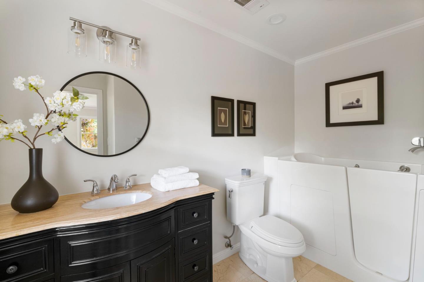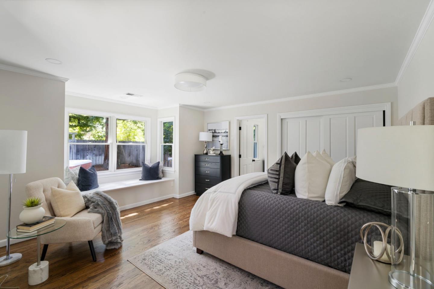 A rare opportunity nestled on the border of Atherton, this more than quarter acre property with an elegant single-story home awaits behind the gates. A comfortable California-living floor plan that flows effortlessly both inside and out. Conveniently situated on a tree-lined street just off Woodside Shopping Plaza with easy access to Hwys 280, 101, and Downtowns Menlo Park and Redwood City. Outside, enjoy sprawling space including numerous seating areas plus privacy. Inside, experience rich hardwood floors, a welcoming family room, a dedicated dining room, and a grand great room. The chef's kitchen with gas stove, convenient island, and just off the upgraded two car garage, a multipurpose laundry/ bonus kitchen area. The kitchen is open to the bright family room with vaulted ceiling, skylight, fireplace, wet bar, sub zero wine refrigerators, and built ins. With two en-suite bedrooms, one is privately situated, with the 2nd as primary suite situated in the main bedroom wing of the home which includes walk-in closet and spacious bath. Two additional large bedrooms access an upgraded hall bath. Numerous doors open to the tranquil backyard. This light and bright home has recessed lighting and central cooling and heating.